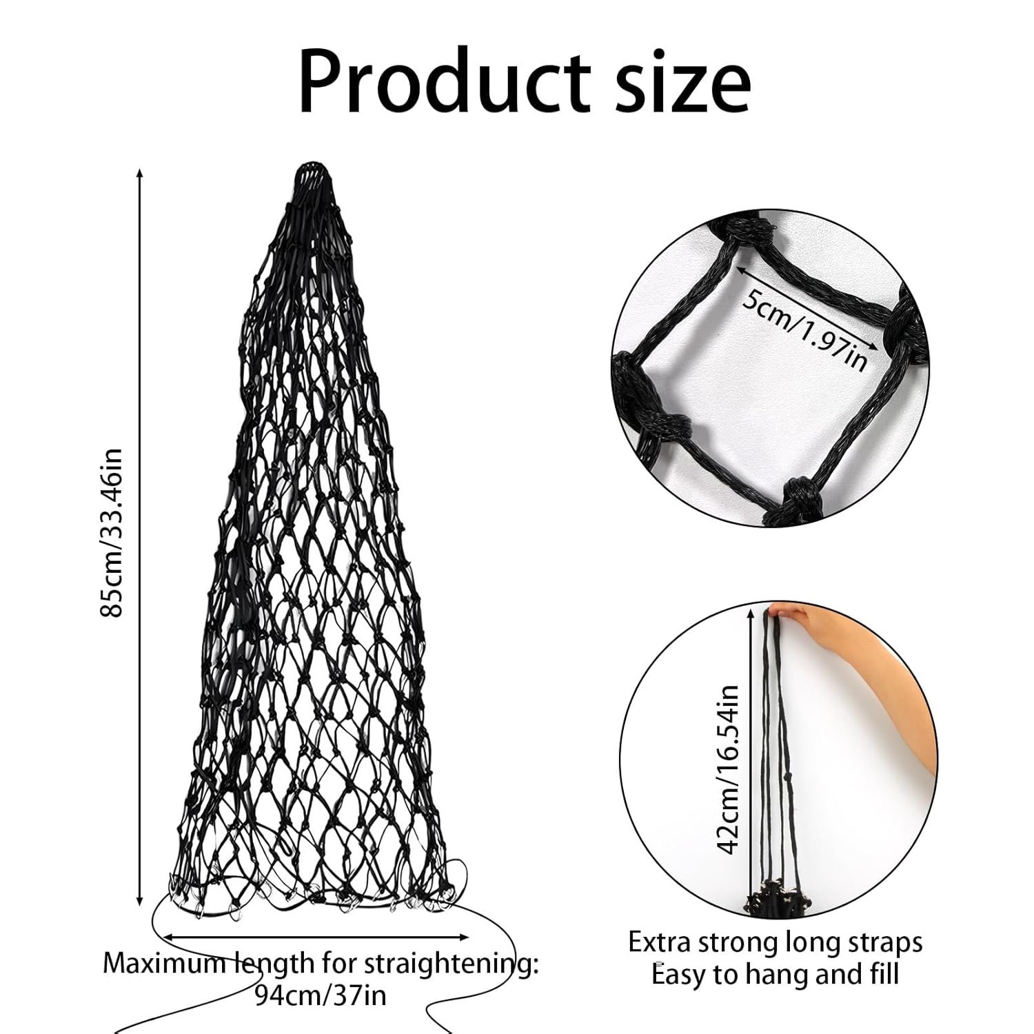Großes Fassungsvermögen: Das Heunetz hat eine Länge von 85 cm und eine Öffnung von bis zu 94 cm, sodass es problemlos mit Heu gefüllt werden kann. Dank des großen Fassungsvermögens können Sie etwa 3 kg Heu auf einmal einfüllen.