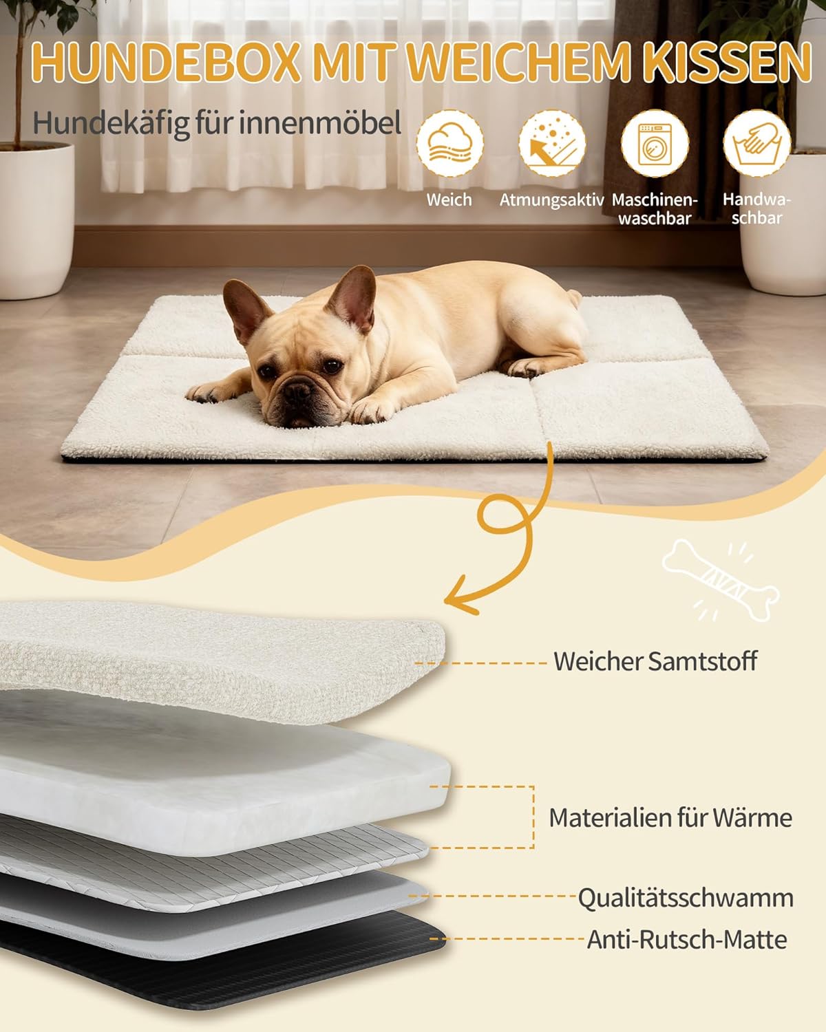 Der Boden des Hundekäfigs ist rutschfest, um Kratzer auf dem Boden zu vermeiden