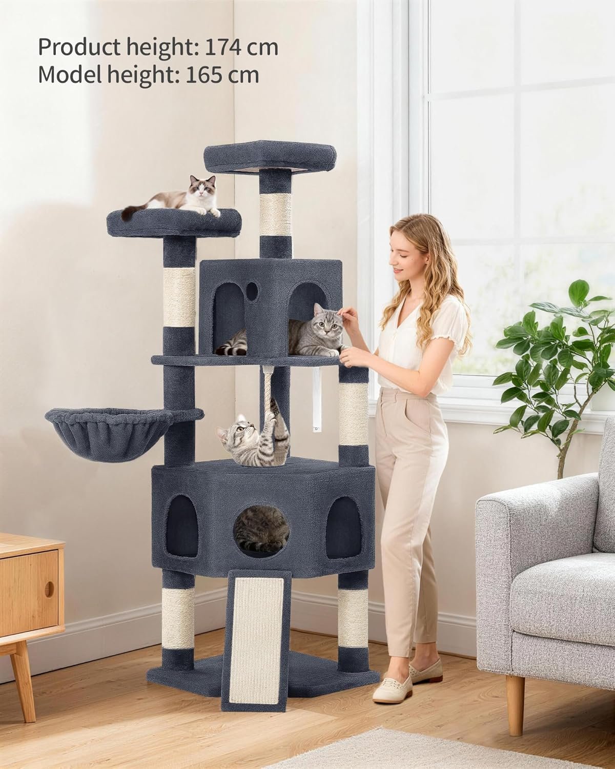 Zwei Höhlen, zwei Plattformen: Die geschlossene Bauweise schützt Ihre Katzen vor äußeren Störungen und bietet ihnen einen privaten Rückzugsort. Mehrere Katzen können gleichzeitig spielen, ohne sich gegenseitig zu stören – ideal für Haushalte mit mehreren Katzen