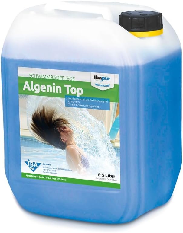 Algenin Top verhindert Algenwachstum und tötet bereits vorhandene Algen ab. Absolut schaumfreies, pH-neutrales, hochaktives Breitband-Algizid mit nachgewiesener Langzeitwirkung. Frei von Chlor und Schwermetallen und daher für alle Pooltypen einsetzbar und mit allen Wasseraufbereitungsmitteln verträglich. Für klares und angenehmes Schwimmbadvergnügen.
