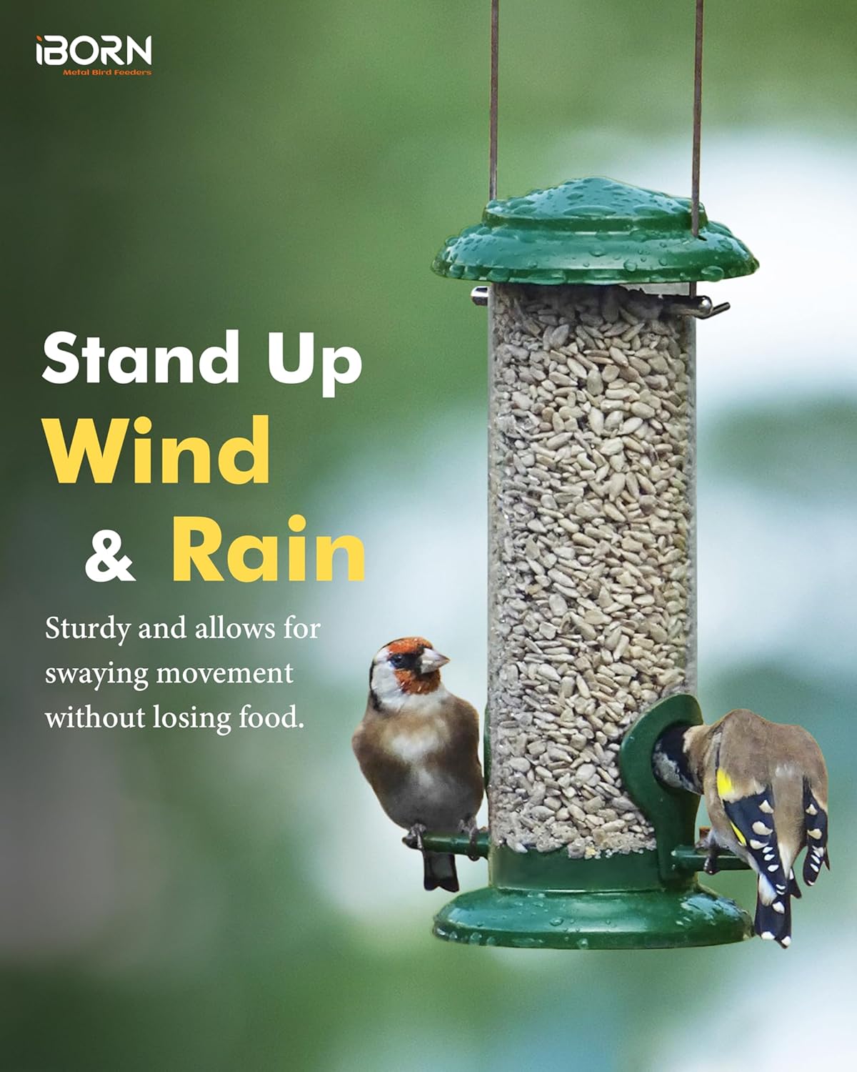 Grüne Pulverbeschichtung, kein Ausbleichen, ideal für die ganzjährige Fütterung: langlebig und robust. Das gesamte Vogelhäuschen – bestehend aus Metalldach, Sockel, Futteröffnungen und Sitzstangen – ist grün pulverbeschichtet, rostbeständig und wetterfest. Mit seinem edlen, stilvollen grünen Design und seinem traditionellen Aussehen lockt er mehr gefiederte Freunde in Ihren Garten und verleiht Ihrem Gartenleben mehr Lebendigkeit.