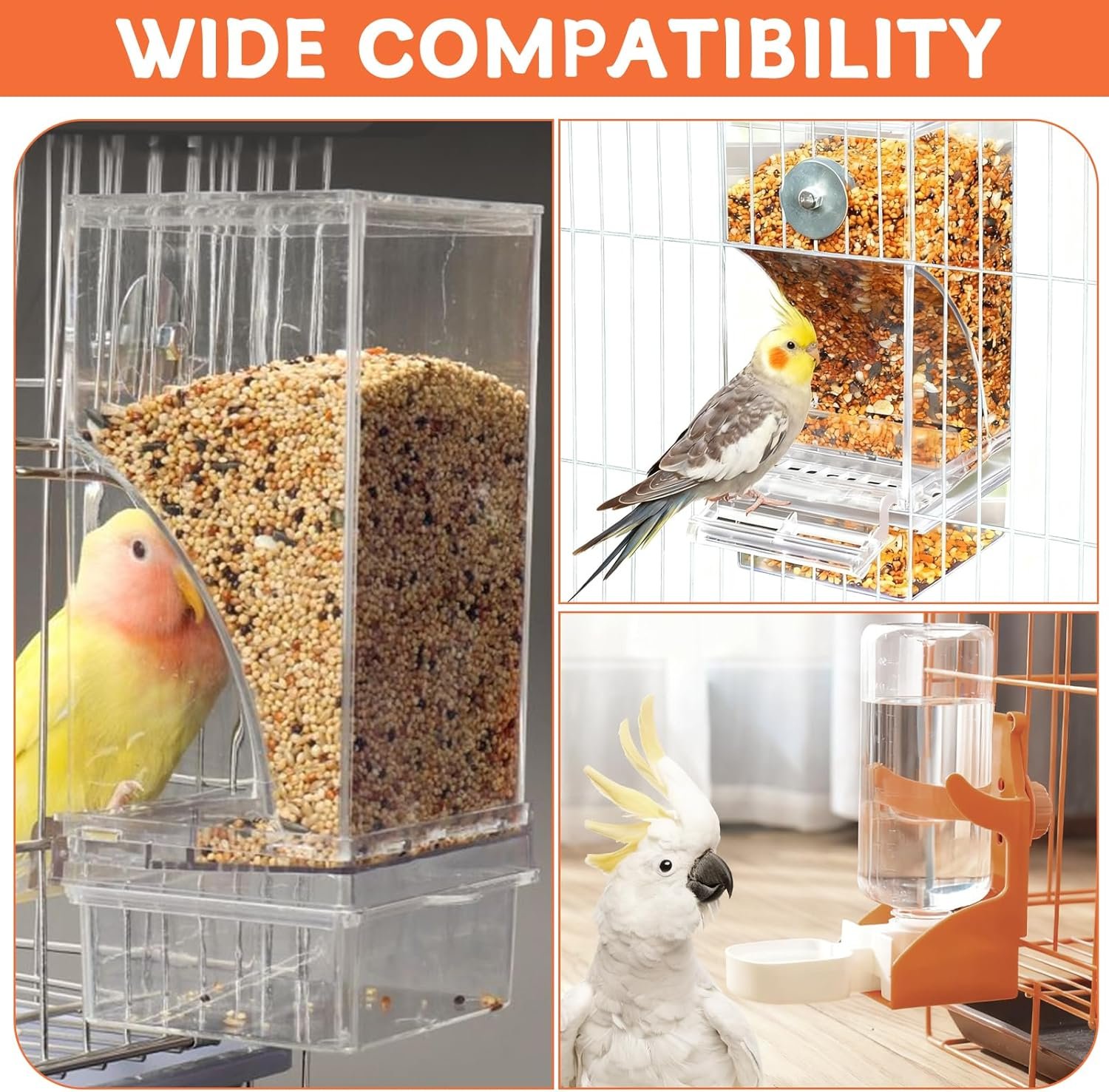 Breite Kompatibilität: Dieses Vogelfutter- und Vogelwasserspender-Set wurde speziell für kleine bis mittelgroße Vögel entwickelt und eignet sich daher besonders für Schwanzsittiche, Nymphensittiche, Wellensittiche, Kakadus (kleinere Exemplare), Finken, Kanarienvögel, Turteltauben, Spatzen, Stare, Mainas und verschiedene andere Ziervögel. Das wissenschaftlich entwickelte Design des Futterauslaufs und Wasserspenders ist mit allen gängigen Vogelkäfigen kompatibel und somit eine praktische und durchdachte Fütterungshilfe für Haushalte mit Vögeln.