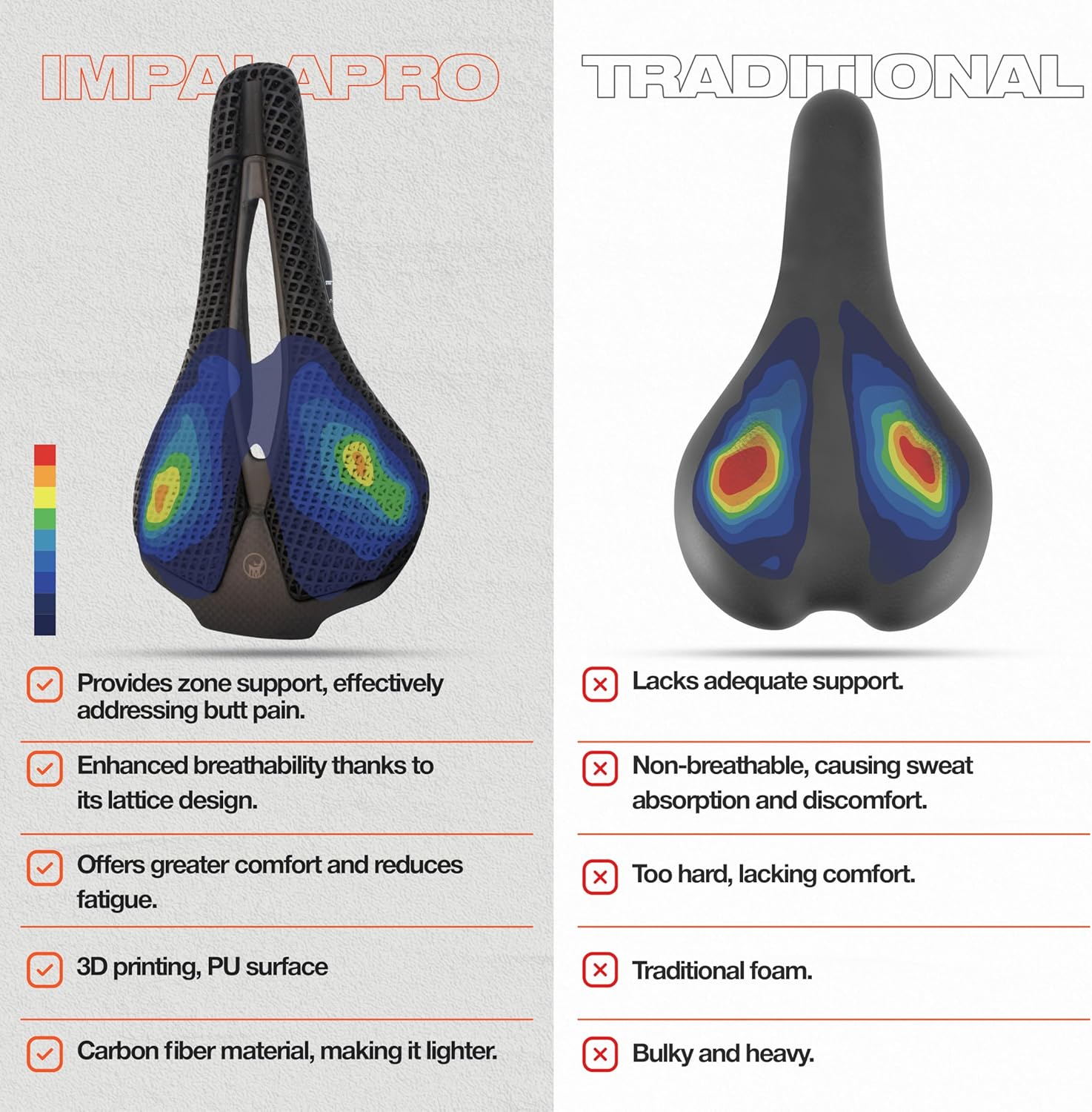 Ergonomische Passform für mehr Komfort: Dieser 3D-gedruckte Fahrradsattel wurde mit der neuesten 3D-Drucktechnologie entwickelt und verfügt über eine Wabenstruktur, die den Druck gleichmäßig verteilt und Druckstellen entlastet. Der ergonomische Carbon-Fahrradsattel passt sich dank gezielter Zonenanpassung individuell an, erhöht den Komfort, verbessert die Durchblutung und reduziert Ermüdungserscheinungen. Ideal für Straßen- und MTB-Fahrer sorgt es für ein gefühlloses Fahrerlebnis – auch auf langen Strecken über 100 km.