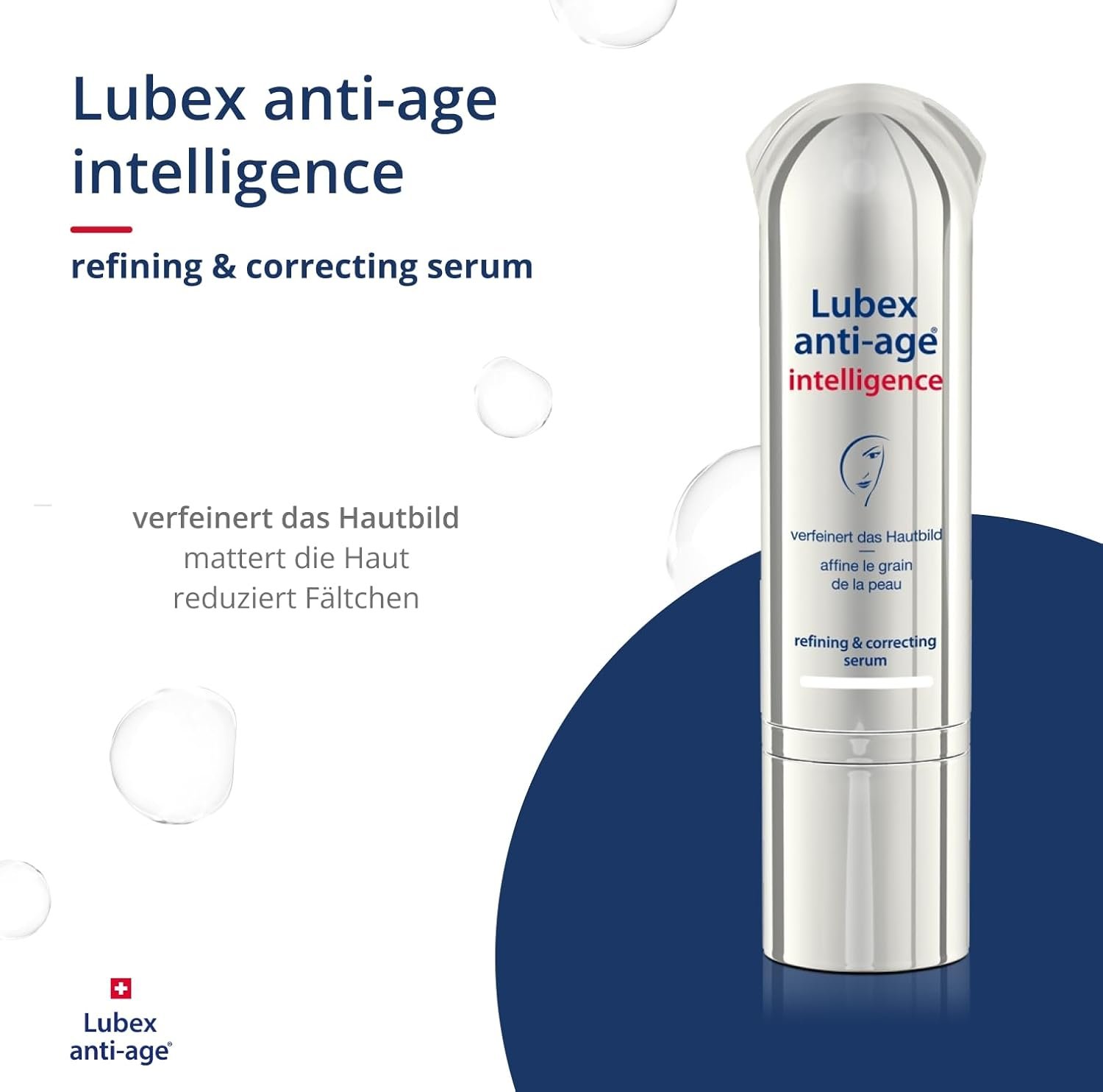 Schweizer Qualität: Lubex anti-age steht seit über 15 Jahren für dermatologische Expertise aus der Schweiz. Unsere speziell abgestimmten Behandlungen überzeugen durch hochwirksame, dermatologisch anerkannte Wirkstoffe, die einer vorzeitigen Hautalterung gezielt entgegenwirken. Entwickelt ohne Konservierungsstoffe, allergene Duftstoffe, Mikroplastik, Farbstoffe und Paraffinöl