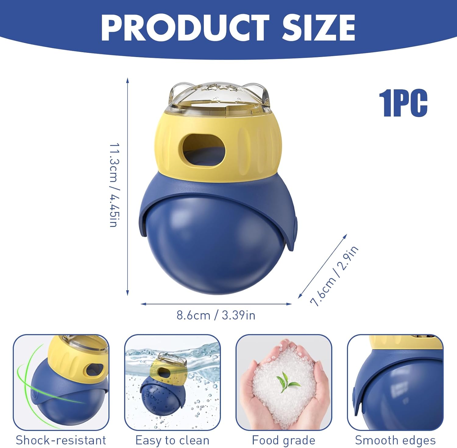 – Der Slow-Food-Ball für Katzen verfügt über zwei kugelförmige Hohlräume unterschiedlicher Größe. Leckerlis werden gegeben, wenn die Katze sie mit der Nase anstupst oder rollt. Diese langsame Fütterung fördert kleinere, häufigere Mahlzeiten, sorgt für eine gesündere Verdauung und verhindert übermäßiges Essen.