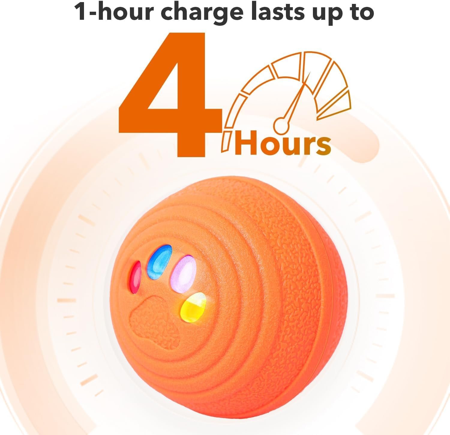 Lange Akkulaufzeit mit intelligenter Steuerung: Ausgestattet mit einem leistungsstarken Motor ist der Ball ca. 1,5 Stunden voll aufgeladen und ermöglicht bis zu 4 Stunden Spielzeit. Im intelligenten Modus wechselt das interaktive Hundespielzeug nach kurzer Inaktivität automatisch in den Standby-Modus und kann per Berührung wieder aktiviert werden.