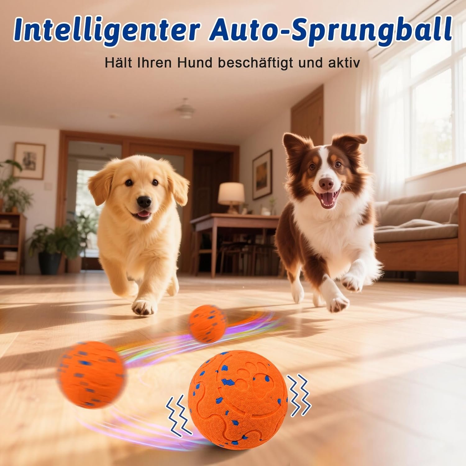 【Intelligentes, reaktionsfähiges Design】Der Hundeball verfügt über einen Schlafmodus, der durch einfaches Berühren aktiviert werden kann – ohne komplizierte Bedienung. Dank der automatischen Hindernisausweichung springt es intelligent zurück und ändert die Richtung, sodass der Spaß ungestört weitergehen kann
