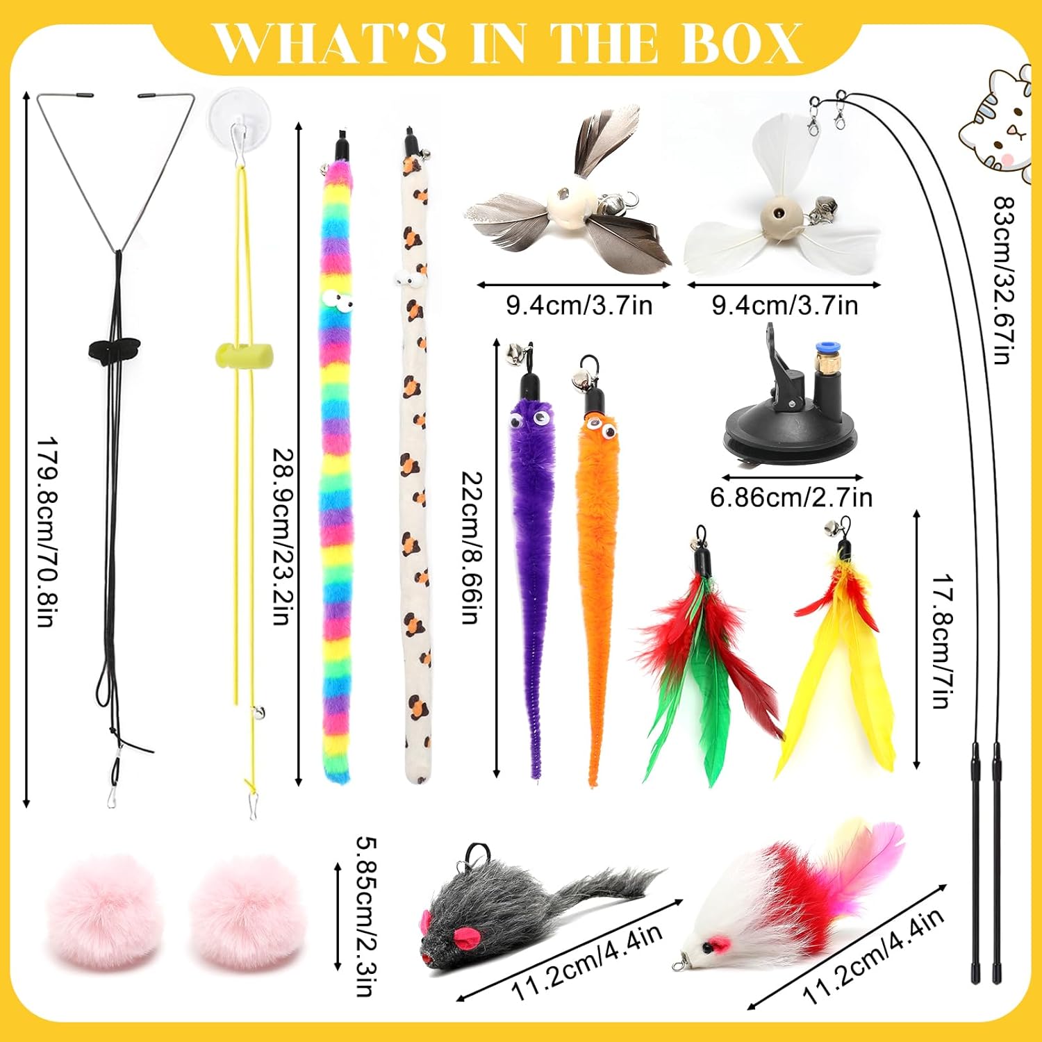 Umfangreiches 12-teiliges Set – Interaktive Katzenangel mit Saugnapf, Federn, Glöckchen, Plüschmaus, Wollknäuel – abwechslungsreiches Katzenspielzeug für Wohnungskatzen, Kätzchen und erwachsene Katzen.
