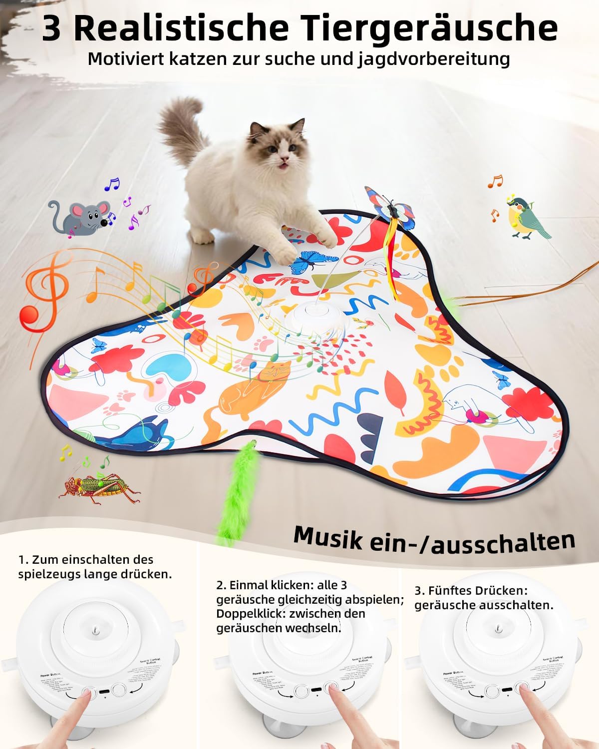 Interaktives Versteckspiel mit erweitertem Realismus: Unser Selbstaktivitäts-Katzenspielzeug weckt den Jagdinstinkt Ihrer Katze mit einer federleichten, abnehmbaren Dreifachfeder (austauschbar und käuflich!) mit unvorhersehbaren Bewegungen. Darüber hinaus sorgen drei täuschend echte Tiergeräusche – vom Vogelgezwitscher bis zur fiependen Maus – für ein intensives Spielerlebnis, das selbst anspruchsvolle Katzen in actiongeladene Versteckspiele verwickelt. Perfekt für energiegeladene Kätzchen und Erwachsene