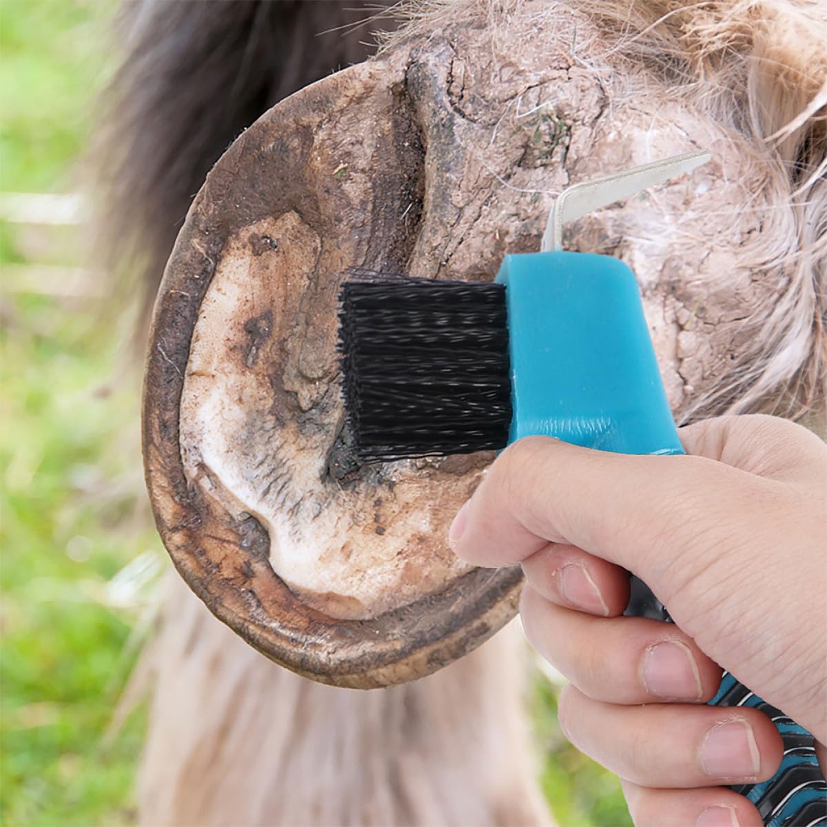 – Entfernt mühelos Schmutz und Schlamm, die sich in den Hufen Ihres Pferdes festgesetzt haben – Hufpflegebürste.