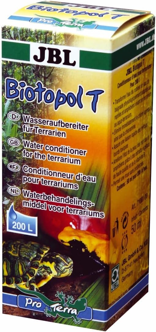 Der Wasseraufbereiter Biotopol T macht aus Leitungswasser physiologisch angepasstes Badewasser für Reptilien und Amphibien. Es enfernt aggressives Chlor und Choloramin und bindet schnell giftige Schwermetalle. Durch die Aufbereitung des Wasser wird die Gesundheit der Reptilien- und Amphibienhaut durch wertvolle Pflanzenextrakte und Vitamin B. Zusätzlich sorgt es für eine problemlos Häutung.