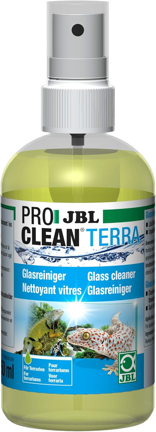 The Proclean Terra glass cleaner is the ideal cleaning agent for the outside of your terrarium. Thoroughly and without much effort, the solution removes limescale residue and other dirt such as fingerprints. Although household cleaners also remove limescale from the glass panes of your terrarium, they are highly toxic to your terrarium inhabitants. Even a small amount of mist of conventional glass cleaners should never get into the terrarium. The JBL glass cleaner contains natural ingredients and combats even stubborn dirt.