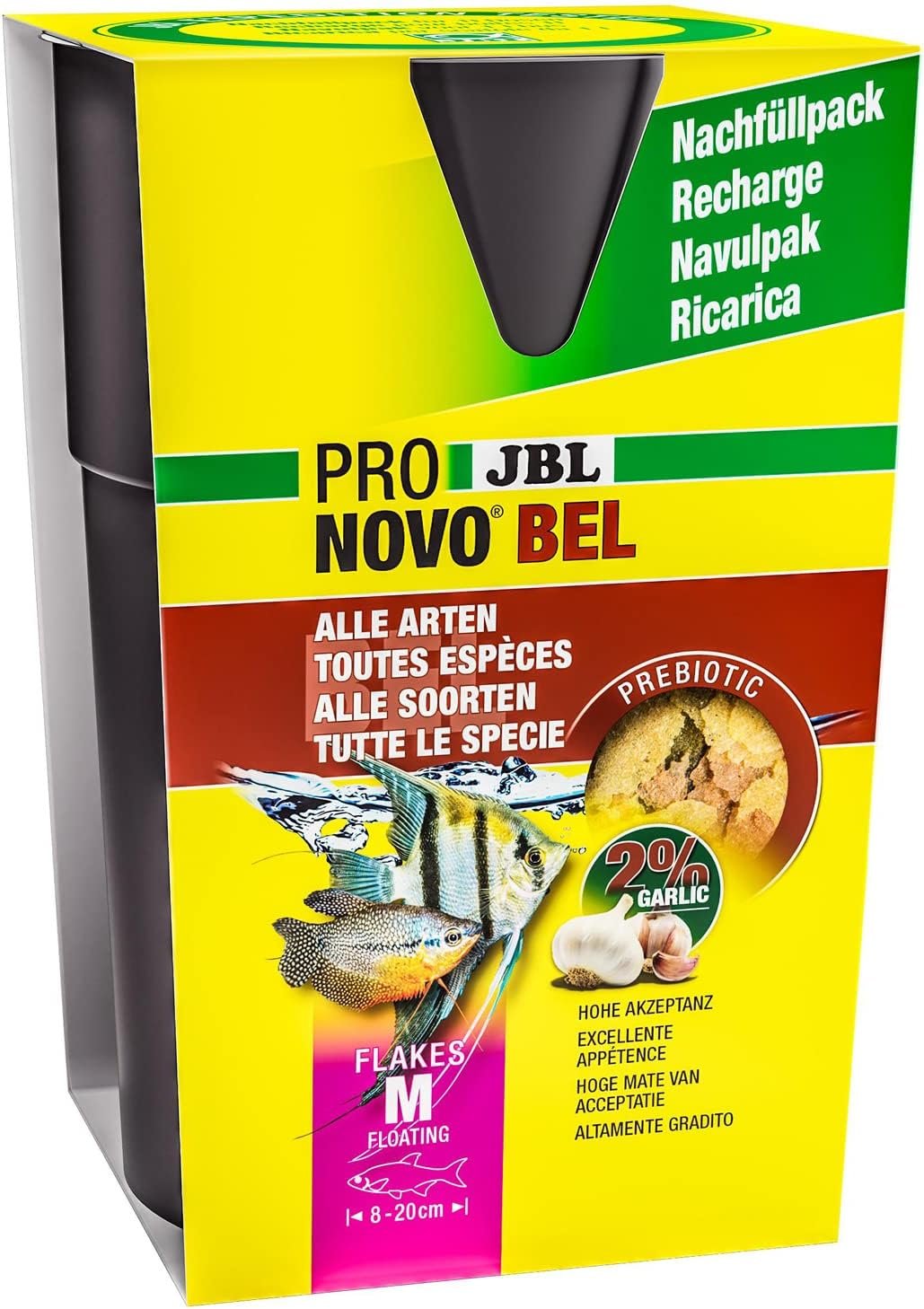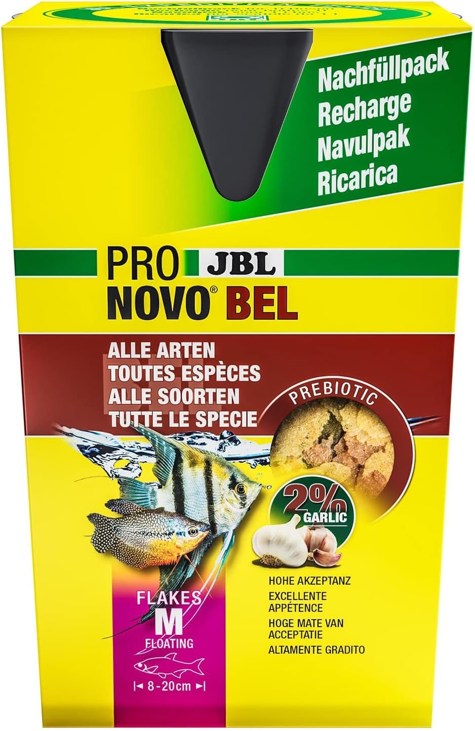 In Gesellschaftsaquarien mit verschiedenen Fischarten stellen die gepflegten Zierfische auch unterschiedliche Ansprüche an das Futter. JBL PRONOVO BEL berücksichtigt die verschiedenen Ernährungstypen und bietet Ihren Fischen eine große Vielfalt und Abwechslung für eine naturnahe und gesunde Ernährung. Zur Perfektionierung des Futterangebots können Sie das Hauptfutter durch weitere Futtersorten aus dem JBL Artenkonzept sowie durch Leckerbissen ergänzen.