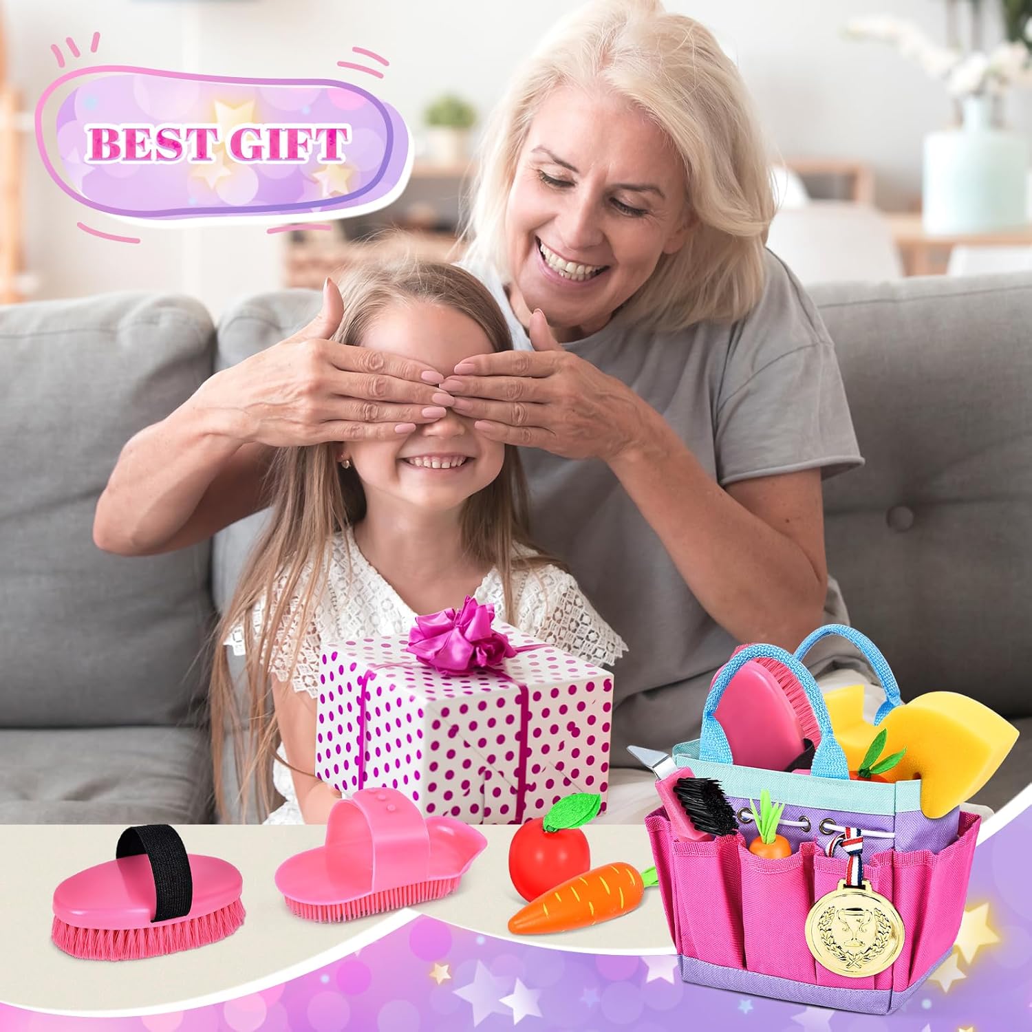 Pferdepflegeset: Das umfassende Pflegeset ist kindgerecht gestaltet und enthält eine Vielzahl hochwertiger Werkzeuge, mit denen Kinder Pferdepflege spielerisch erleben können. Durch Nachahmung und Interaktion lernen Kinder nicht nur Fürsorge, sondern entwickeln auch Verantwortungsbewusstsein. Das Set ist ideal für die Eltern-Kind-Interaktion und das spielerische Lernen und fördert die Entwicklung von Sorgfalt und Geduld.