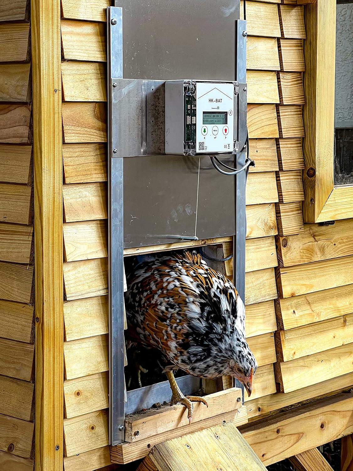 Light sensor / twilight controlled. The electronic poultry flap automatically opens and closes the door or flap on the chicken coop using a cable pull and twilight and protects the animals from predators and external influences