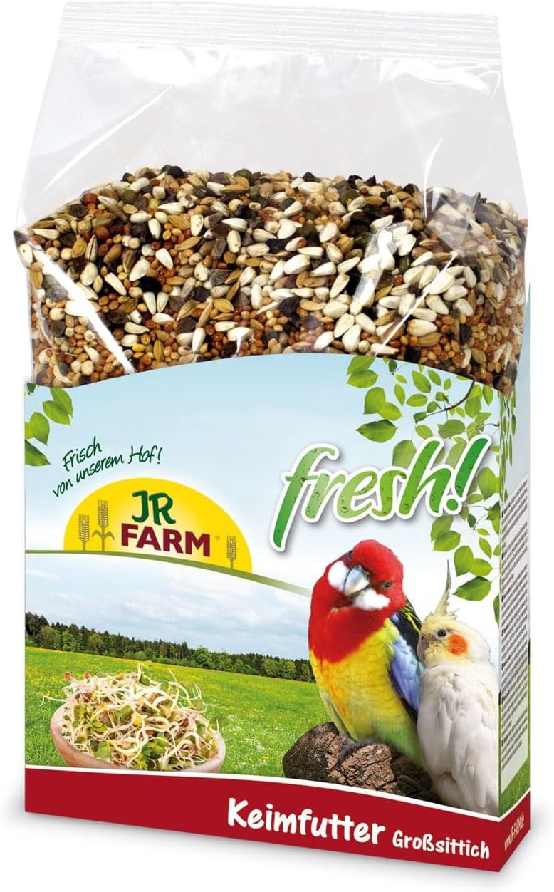 Beim Quellen verändern sich auch die Proteine im Futter enzymatisch und können so von Großsittichen besser verwertet werden. Der hohe Wassergehalt der Sämlinge regt zudem die Verdauung der Tiere an. Das Keimfutter eignet sich ideal als nährstoffreiches Ergänzungsfutter – insbesondere in den kalten Wintermonaten, sowie in der Brut- oder Mauserzeit. Die Keimfuttermischung ist gebrauchsfertig für die Herstellung frischer Setzlinge. Wichtig: Der Verzehr kann den Bruttrieb der Tiere anregen.