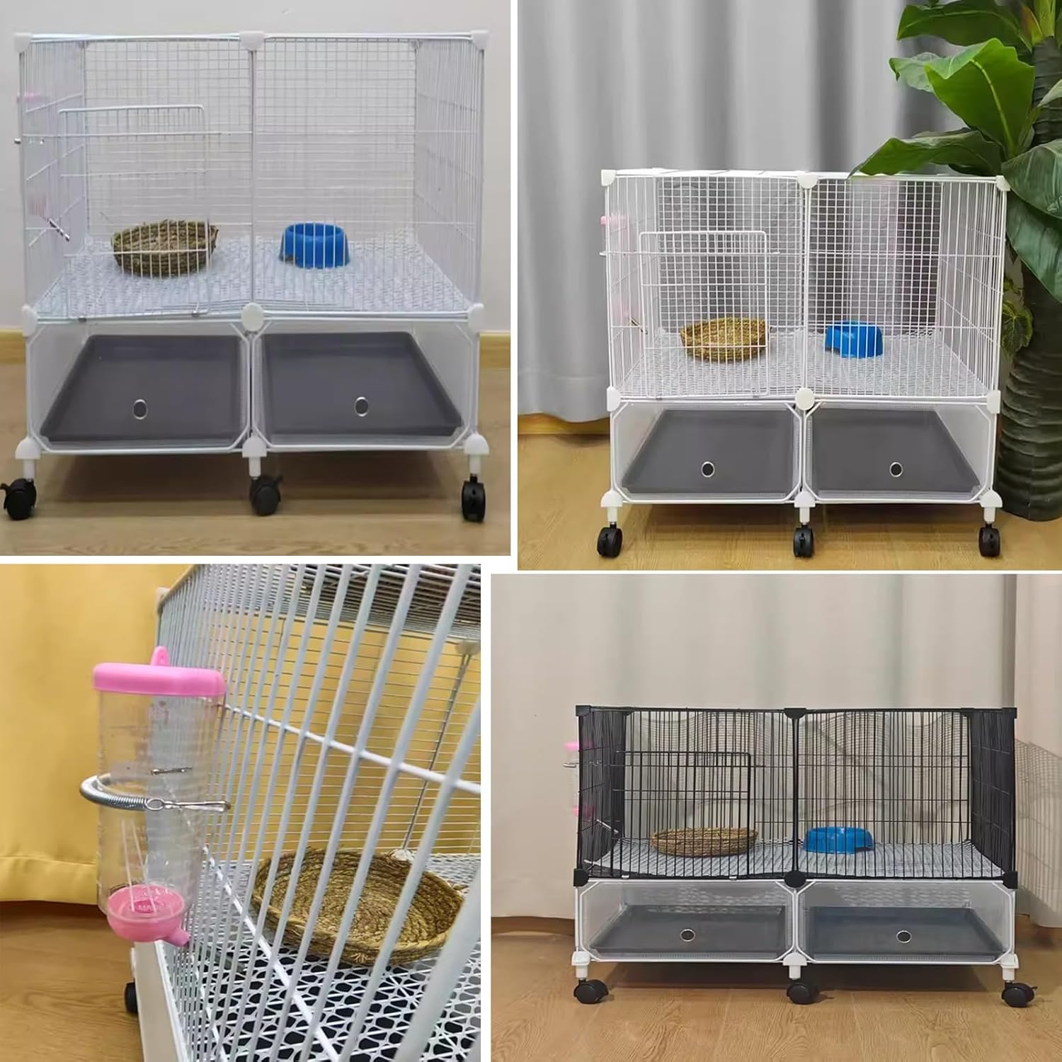 Ausziehbares Tablett für einfache Reinigung: Das zweischichtige Schiebesystem ermöglicht ein schnelles Herausnehmen und Spülen mit Wasser. Dadurch bleibt der Kaninchenkäfig mit minimalem Aufwand hygienisch und geruchsneutral.