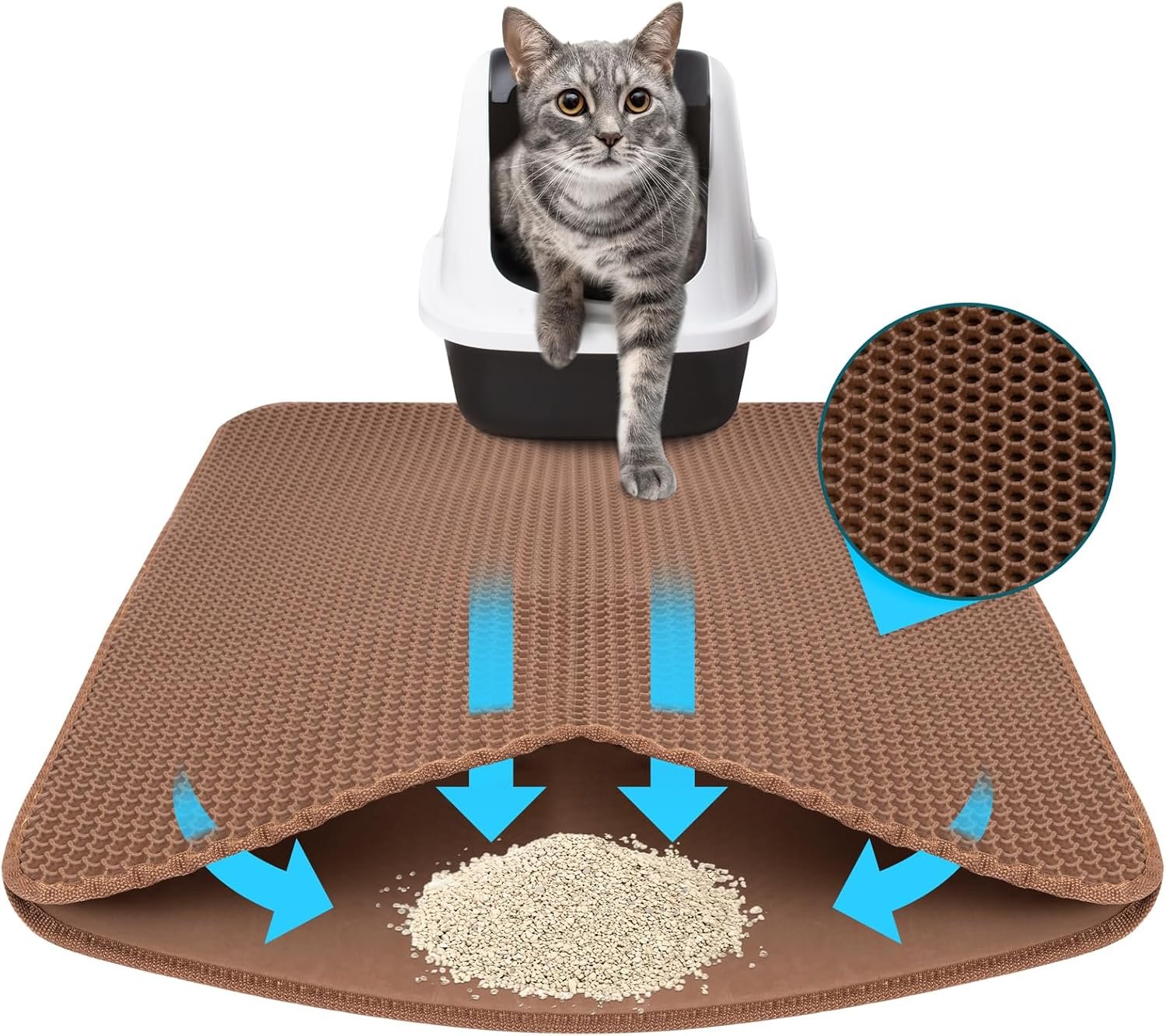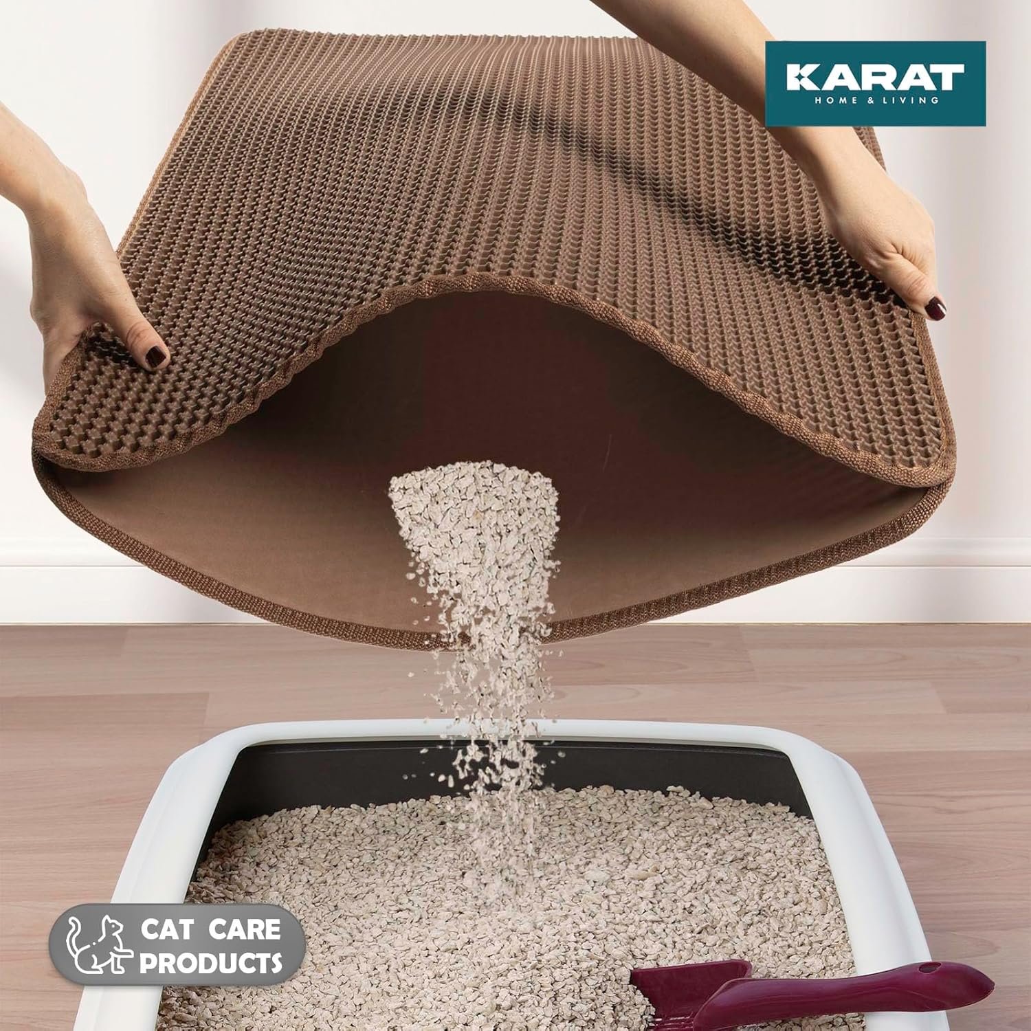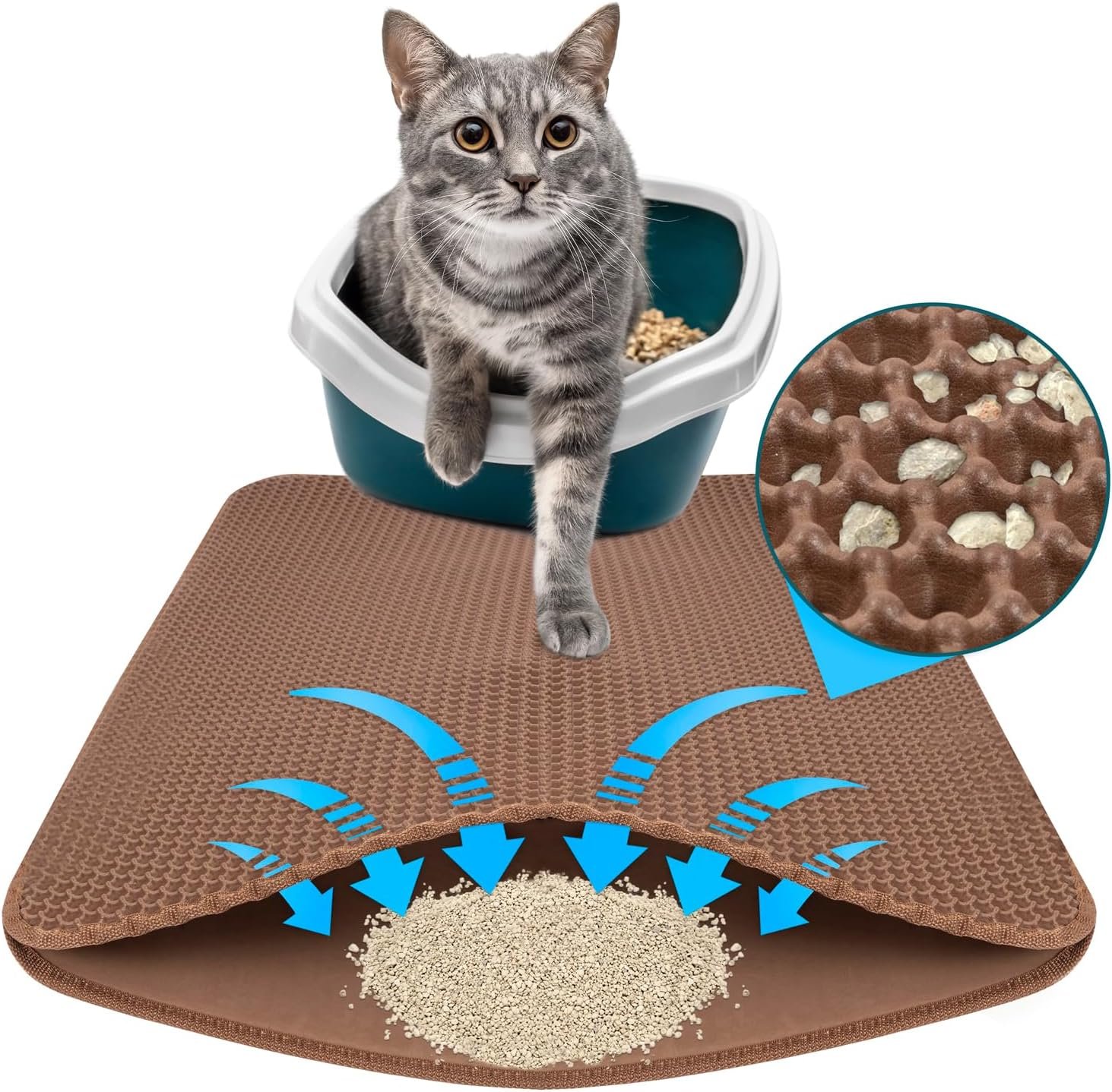Einfache Anwendung – Legen Sie die Matte einfach vor die Katzentoilette und entsorgen Sie das gesammelte Streu bei Bedarf