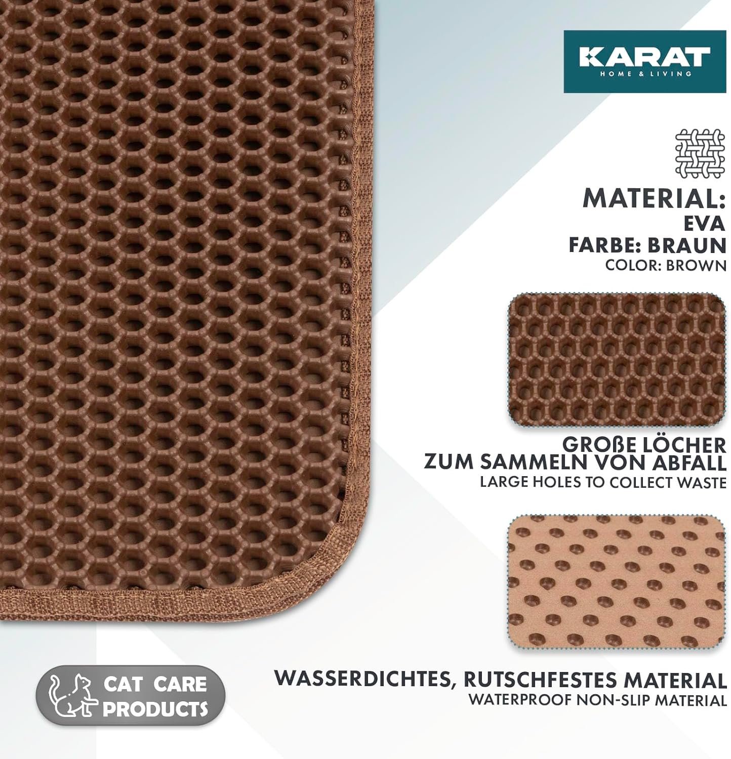 Leicht zu reinigen: Die wasserdichte und rutschfeste Unterseite der Katzenmatte besteht aus strapazierfähigem EVA-Material