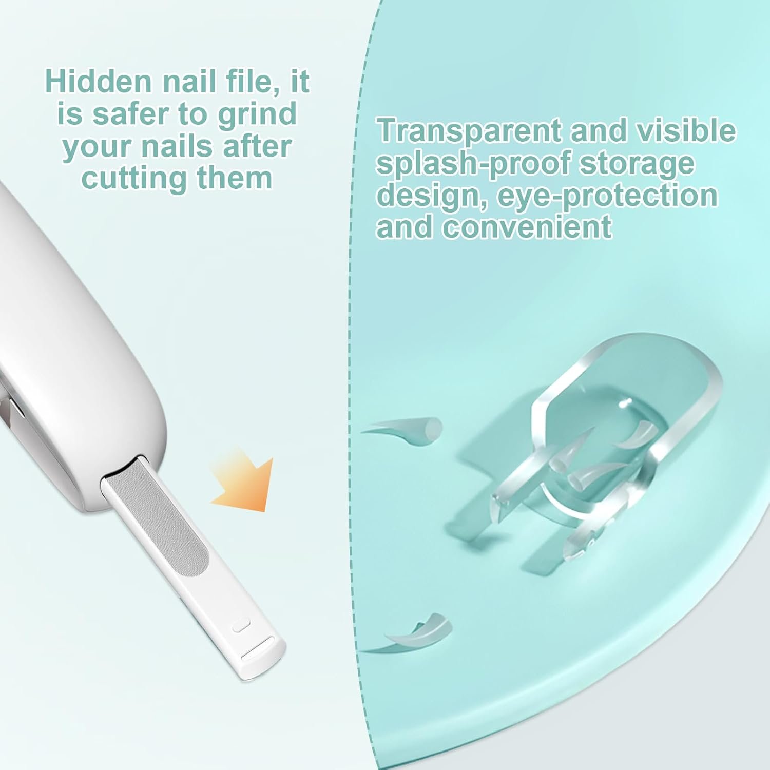 Das transparente und sichtbare Aufbewahrungsdesign für Katzennagelknipser mit Spritzschutz verhindert das Trimmen, verhindert effektiv das Spritzen abgebrochener Nägel und erleichtert die Reinigung.