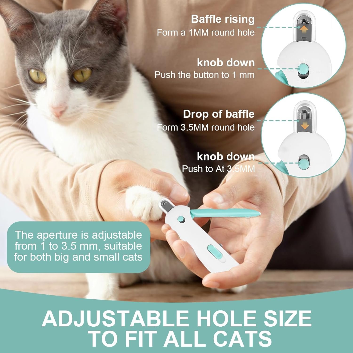 Der Krallenschneider für Katzen ist mit verstellbaren Löchern ausgestattet, um ein Überschneiden des Krallenknipsers für Haustiere zu vermeiden.