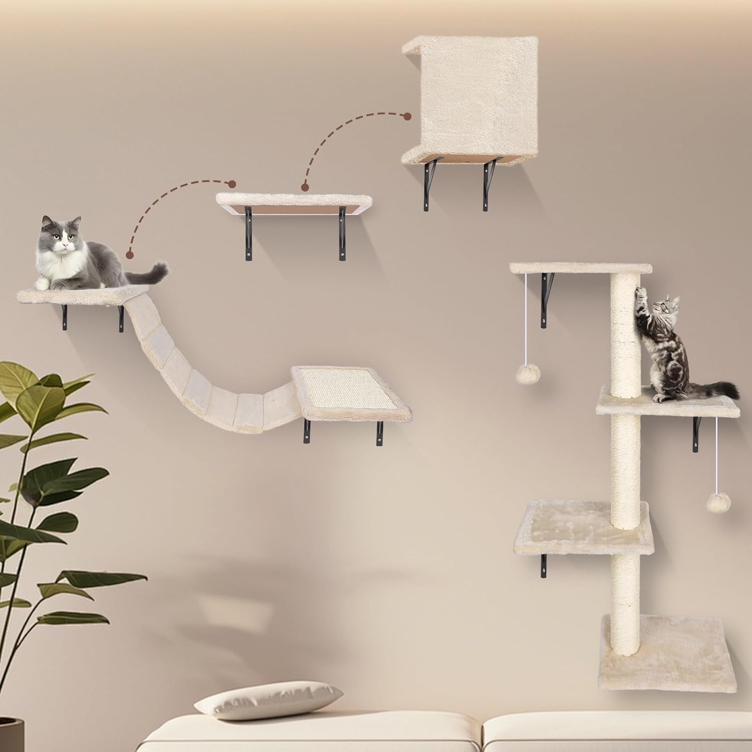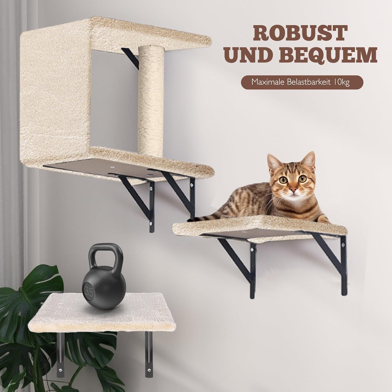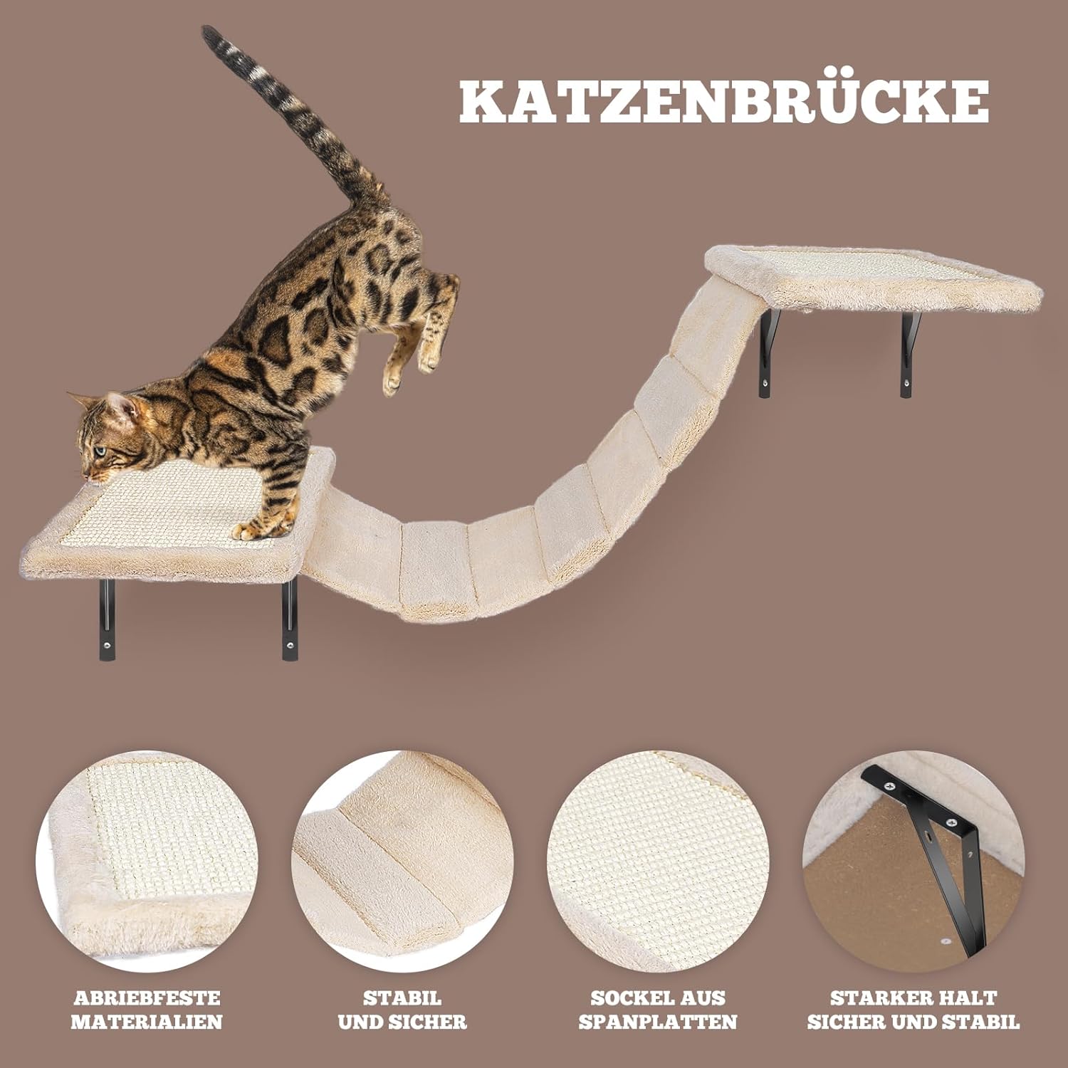【VIELSEITIGE KATZENWAND – DAS ALL-IN-ONE-VERGNÜGEN】 Diese Katzenwand vereint alles, was Ihre Katze liebt: Katzenbrücke, gemütliches Katzenwandbett, Kratzmöglichkeiten und Kletterelemente. Es ist die perfekte Katzenmöbel-Wandkombination zum Schlafen, Springen, Kratzen und Spielen – ein komplettes Katzenkletterwand-Set für alle Bedürfnisse.