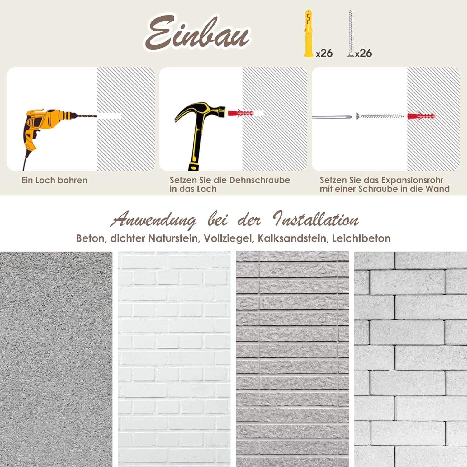 Einfache und übersichtliche Installation: Wir haben die Installationsschritte auf das Wesentliche reduziert. Jede vorgebohrte Lochposition an den Katzeneinrichtungen ist präzise konstruiert – Sie müssen lediglich die Trägerhalterung ausrichten, befestigen und schon ist alles sicher an der Wand befestigt. Spart Zeit und Mühe.