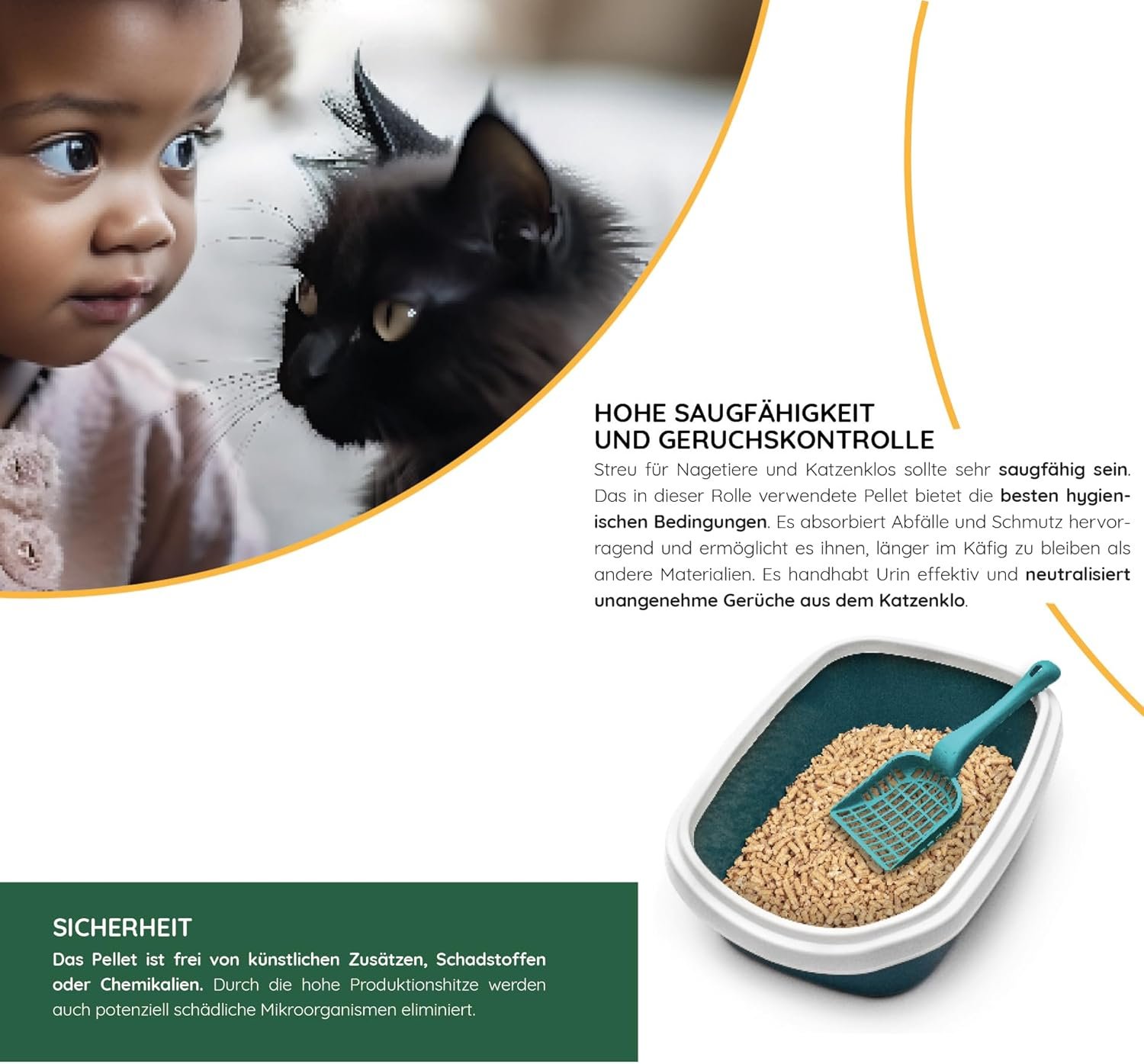 Saugfähigkeit – Das Produkt verfügt über ein hohes Feuchtigkeitsaufnahmevermögen, verhindert unangenehme Gerüche und sorgt für eine trockene und hygienische Katzentoilette