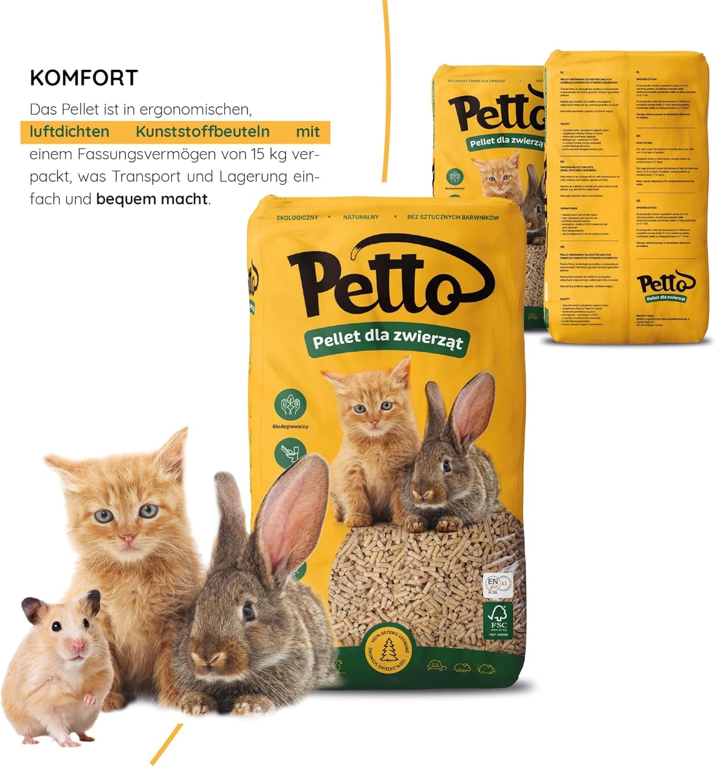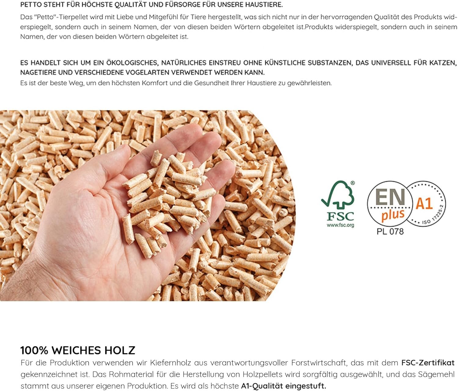 100 % NATURPRODUKT – Die Holzpellets für Katzen, Kaninchen und Meerschweinchen sind 100 % natürlich und enthalten keine künstlichen Zusatzstoffe oder Chemikalien