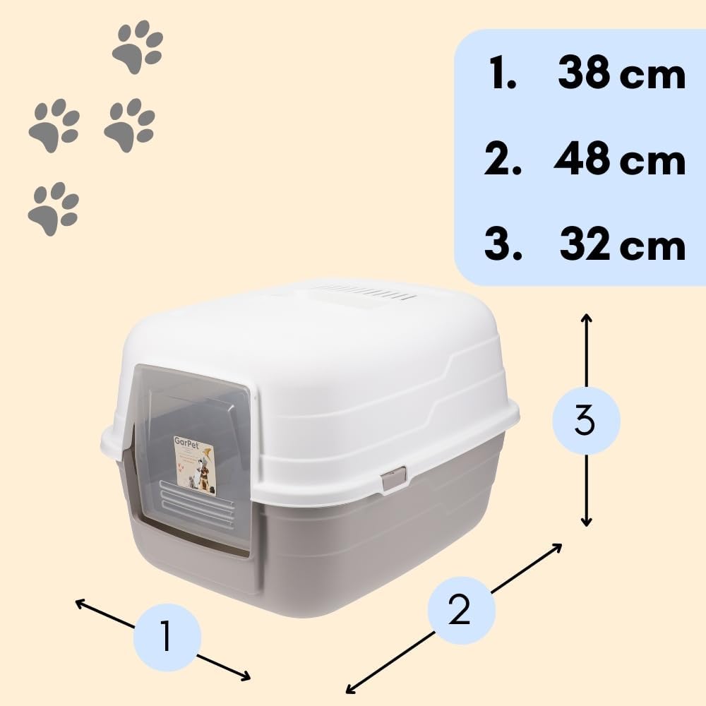 Damit du und deine Katze lange Freude an diesem hochwertigen Produkt haben werdet. Die Haube bietet Ihrer Katze die nötige Privatsphäre und reduziert gleichzeitig die Streuverteilung, sodass Ihr Zuhause stets ordentlich bleibt. Gönnen Sie Ihrer Katze das Beste und Ihnen selbst mehr Komfort mit unserer fortschrittlichen Aktivkohlefilter Katzentoilette. Du wirst die einfache Reinigung, die geruchsneutrale Umgebung und das ansprechende Design zu schätzen wissen, und deine Katze wird den Komfort und die Privatsphäre lieben. Entscheide dich für Qualität, Funktionalität und Bequemlichkeit mit diesem erstklassigen Katzen WC – eine Investition, die sich lohnt!
