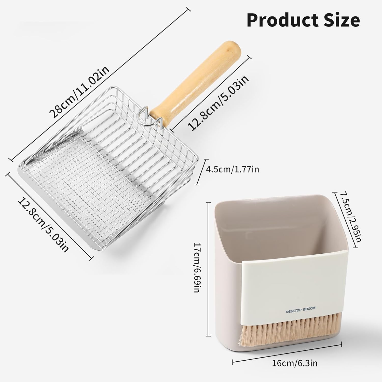 Multifunktionale Kehrschaufel + Reinigungsbürste für saubere Böden. Die Kehrschaufel ist raffiniert gestaltet und kann sowohl als Behälter für Katzenstreu als auch als Ständer für die Katzentoilette verwendet werden. Zusammen mit dem Reinigungsbesen entfernt er mühelos verstreutes Katzenstreu vom Boden und hält die Wohnung sauber