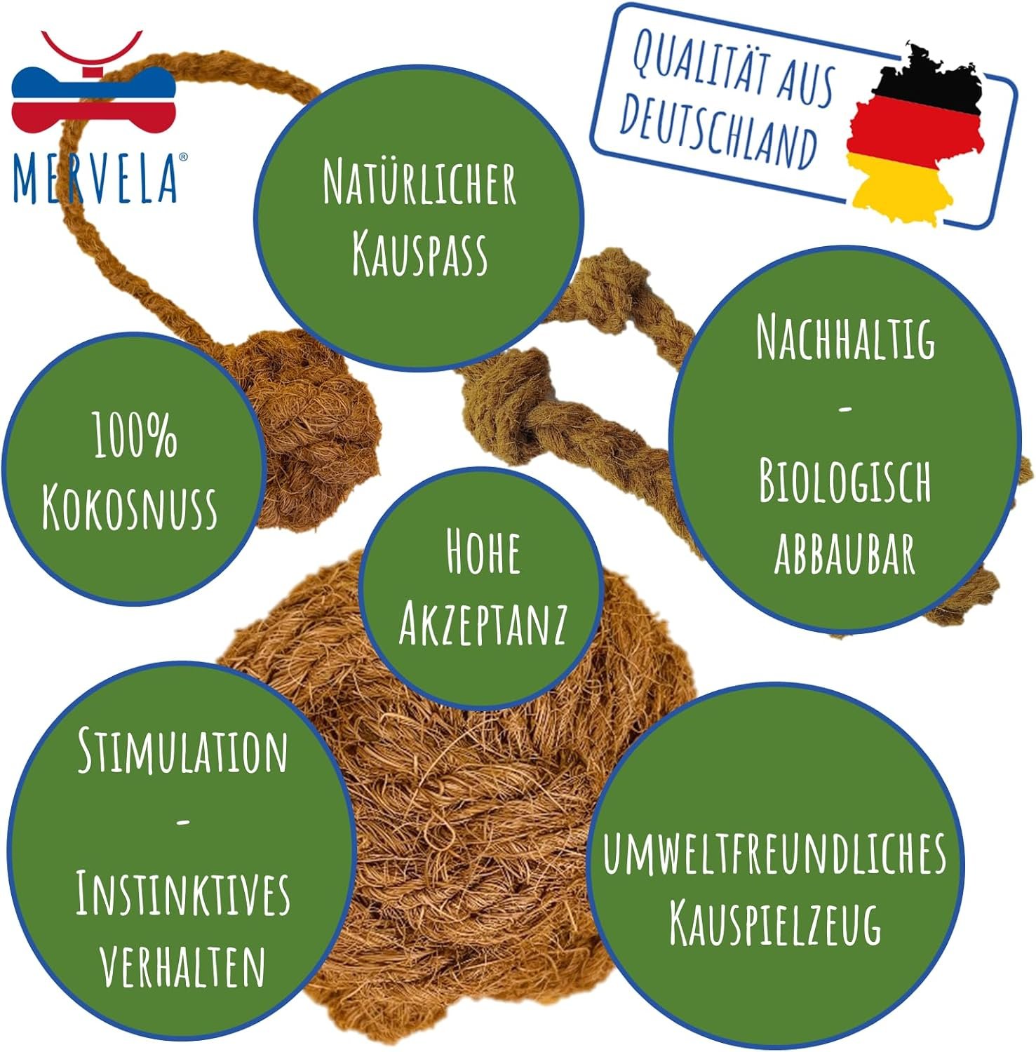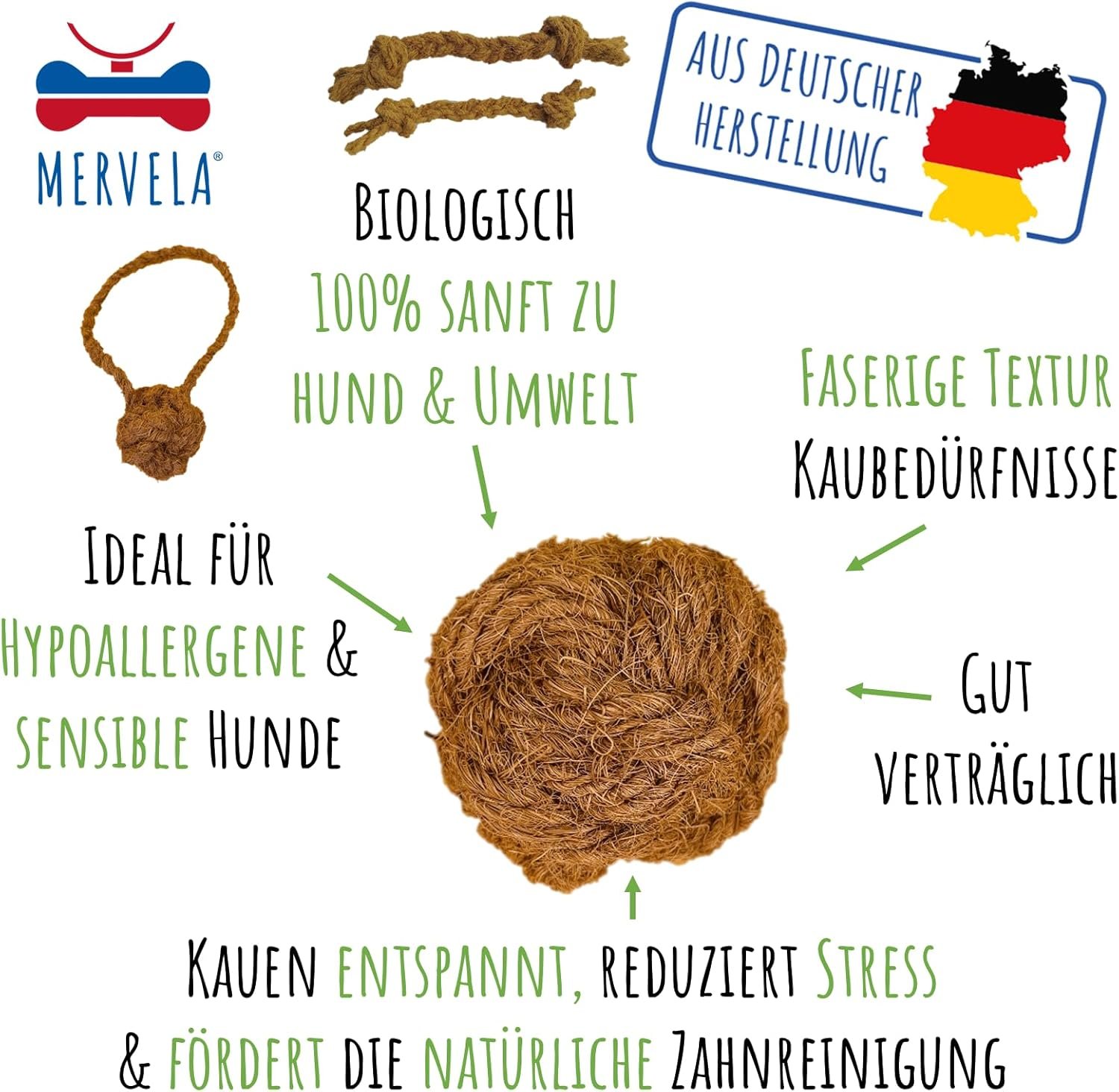 Strapazierfähiges Kokosseil – Hergestellt aus langlebigen Kokosfasern, perfekt zum Kauen, Zerren und stundenlangen Spaß.