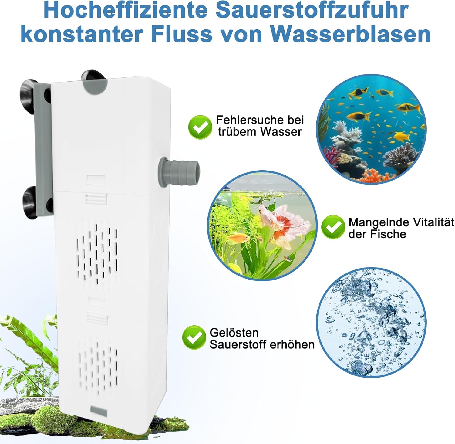 3-in-1-Filter für Aquarium: Verbessern Sie die Lebensbedingungen für die Lebewesen in Ihrem Aquarium mit unserem 3-in-1-Aquariumfilter. Dieser Aquarium-Innenfilter erhöht nicht nur den gelösten Sauerstoff im Wasser, sondern filtert auch effektiv Verunreinigungen heraus und imitiert natürliche Wellen, um eine saubere und gesunde Umgebung für Ihre Fische zu schaffen.