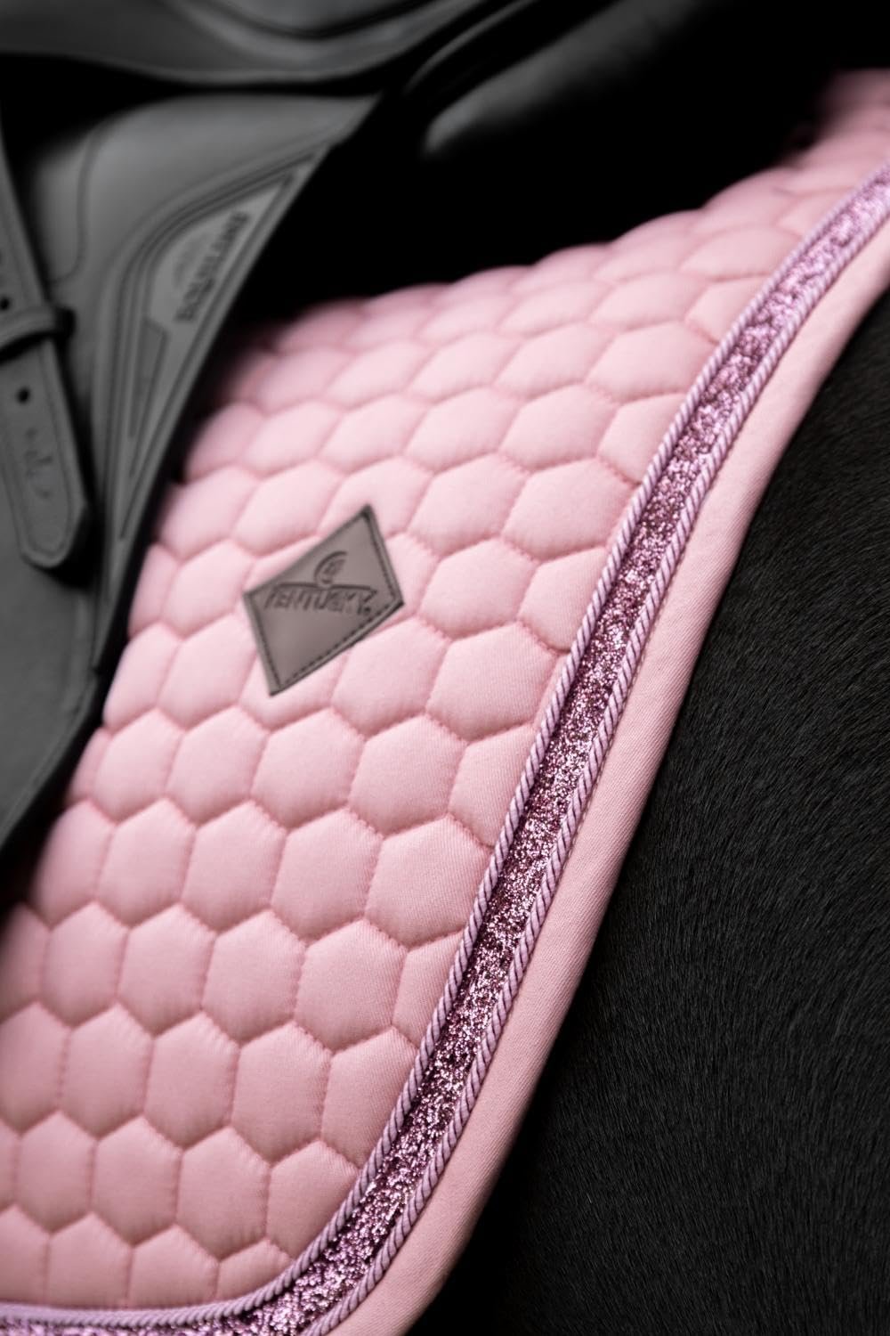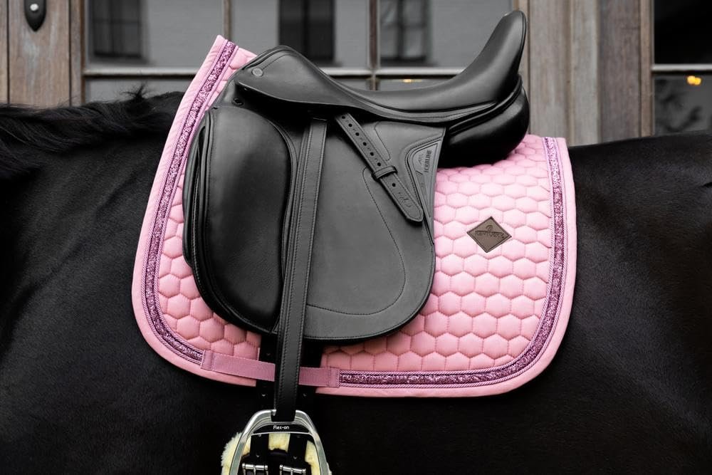 Die Glitter Band Dressage Schabracke vereint Eleganz, Komfort und Funktionalität in einem hochwertigen Produkt. Der markante Glitzerrand verleiht Ihrem Pferd bei jedem Auftritt einen stilvollen Look – ob beim täglichen Training, Turnier oder beim entspannten Ausritt. Das Material aus Baumwoll-Polyester mit Wabenstruktur ist atmungsaktiv und schnell trocknend. Dadurch werden Wärme und Feuchtigkeit zuverlässig reguliert, sodass Ihr Pferd auch bei intensiven Trainingseinheiten angenehm trocken bleibt. Die anatomische Passform entlastet den Widerrist, verhindert ein Verrutschen und sorgt für einen sicheren, bequemen Sitz – geeignet für Dressur und Springen. Darüber hinaus bietet die Schabracke genügend Platz für individuelle Stickereien. Ob Initialen, Vereinslogo oder ein persönliches Motiv – so können Sie Ihre Ausrüstung einzigartig und passend zu Ihrem Stil gestalten. Die aus strapazierfähigen, pflegeleichten Materialien gefertigte Schabracke ist bei 30°C maschinenwaschbar. Durch die Lufttrocknung bleiben Form und Farbe erhalten, sodass Sie lange Freude an einem gepflegten Aussehen haben. Mit dieser Schabracke entscheiden Sie sich für Qualität, Komfort und Eleganz – ein Must-Have für anspruchsvolle Reiter.