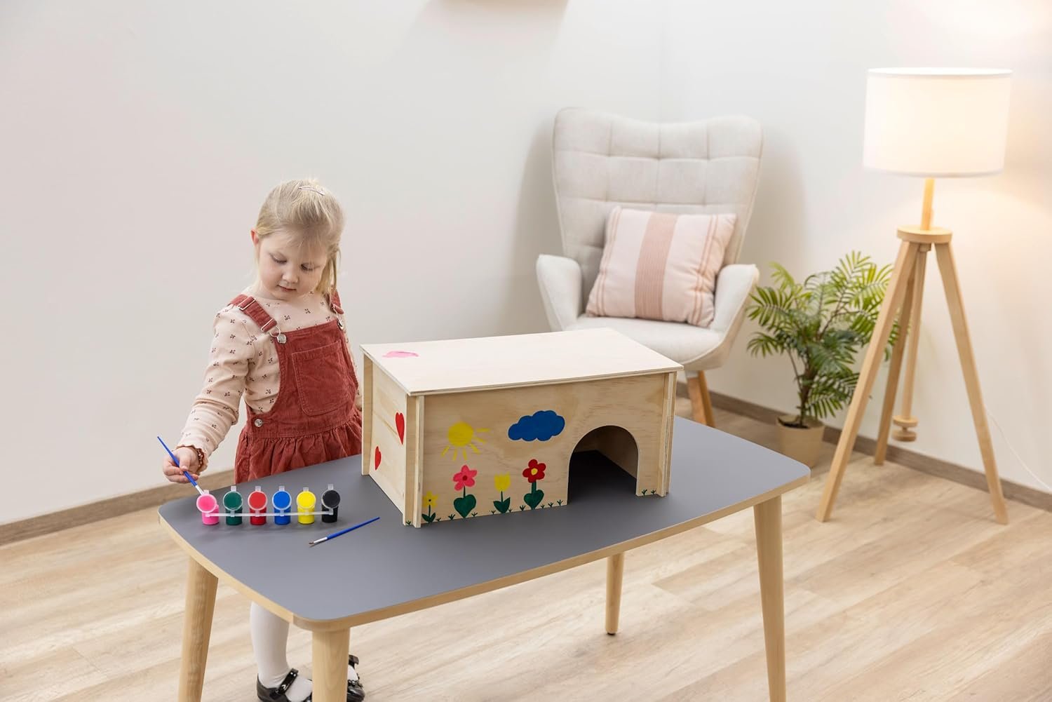 Kreative Gestaltung: Das Nagerhaus bietet Kindern die Möglichkeit, ihrer Kreativität freien Lauf zu lassen. Die unbedenkliche Farbe auf Wasserbasis sorgt für sicheren Malspaß.