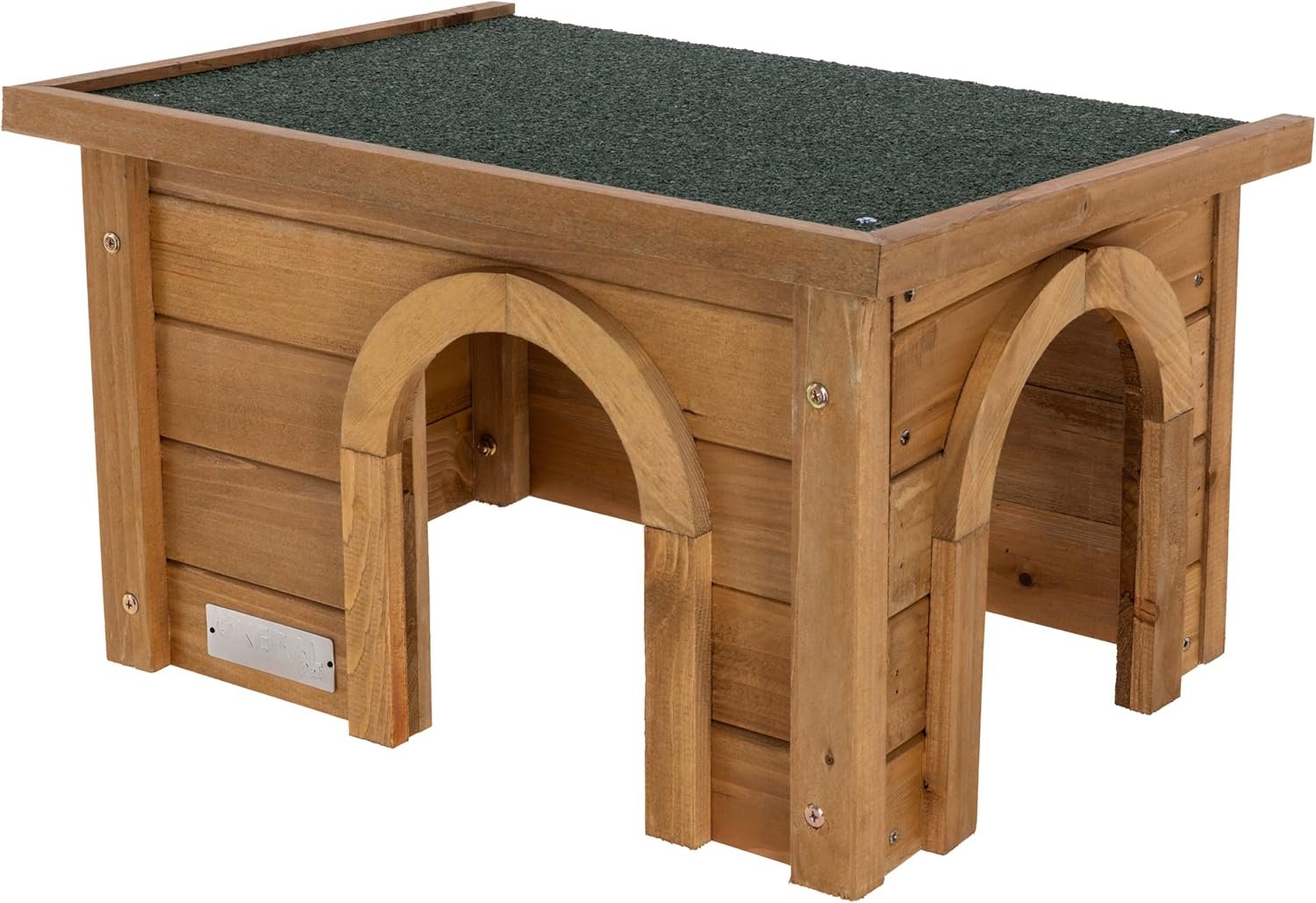 Das Nagerhaus besteht aus hochwertiger Spucktanne und ist durch das wetterfeste Bitumendach ideal für den Einsatz in Freigehegen geeignet