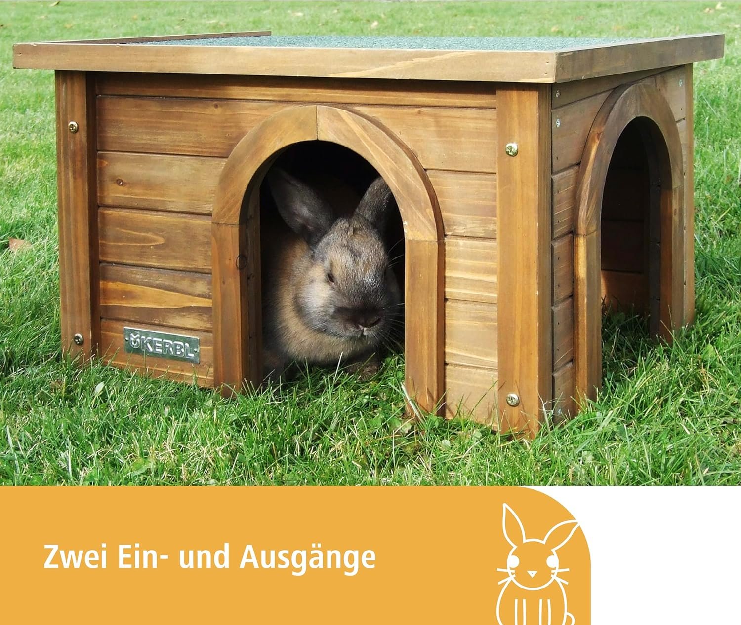 Das Kaninchenhaus verfügt über zwei Eingänge, sodass eine artgerechte Haltung gewährleistet ist
