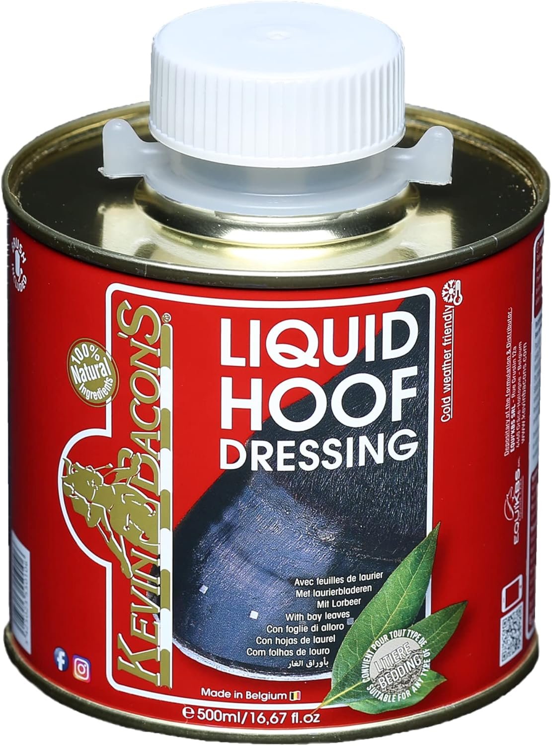 Kevin Bacons Liquid Hoof Dressing ist ein Öl, das für Pferdehufe verwendet werden kann. Das Lorbeeröl kann dabei helfen, die Hufe des Pferdes zu schützen und zu pflegen. Das Öl soll dem Hufhorn nicht nur ein schönes Aussehen verleihen. Hufverband kann bis tief in den Huf wirken, er sorgt für eine gute Nährstoffversorgung, Schutz und Elastizitätserhalt des gesamten Hufes, ohne die Poren zu verstopfen. Die Anwendung kann das Horn vor Feuchtigkeit schützen und zur Wachstumsaktivierung beitragen. All diese Eigenschaften machen Liquid Hoof Dressing zu einem bemerkenswerten Produkt, das von allen Profis im Pferdesport verwendet und empfohlen wird.