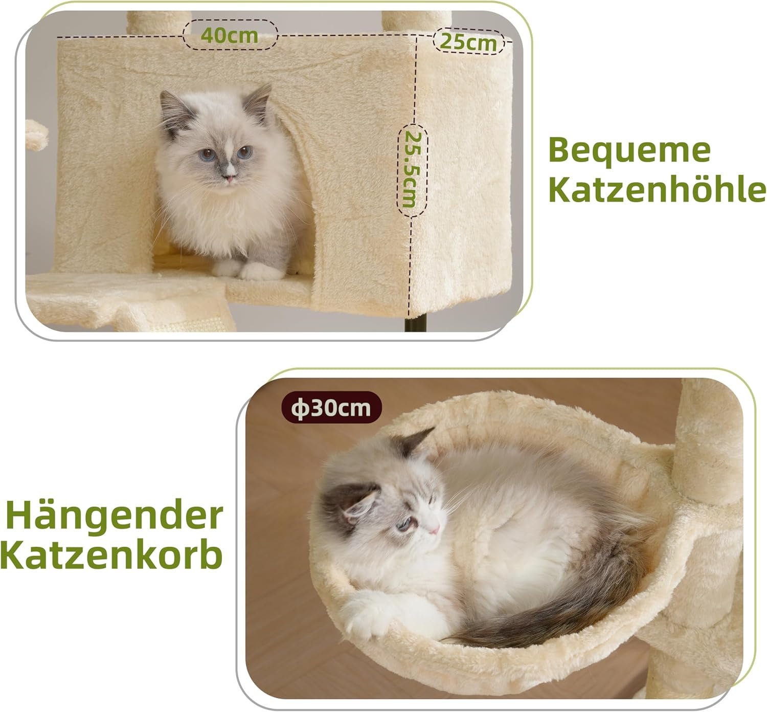 GEMÜTLICHE KATZENHÖHLEN UND HÄNGEMATTE – Die Höhle ist mit weichem Plüschstoff bezogen und bietet der Katze eine gemütliche Toilette. Der hängende Katzenkorb wird von einem inneren Eisenring getragen und vermittelt ein starkes Gefühl der Geborgenheit