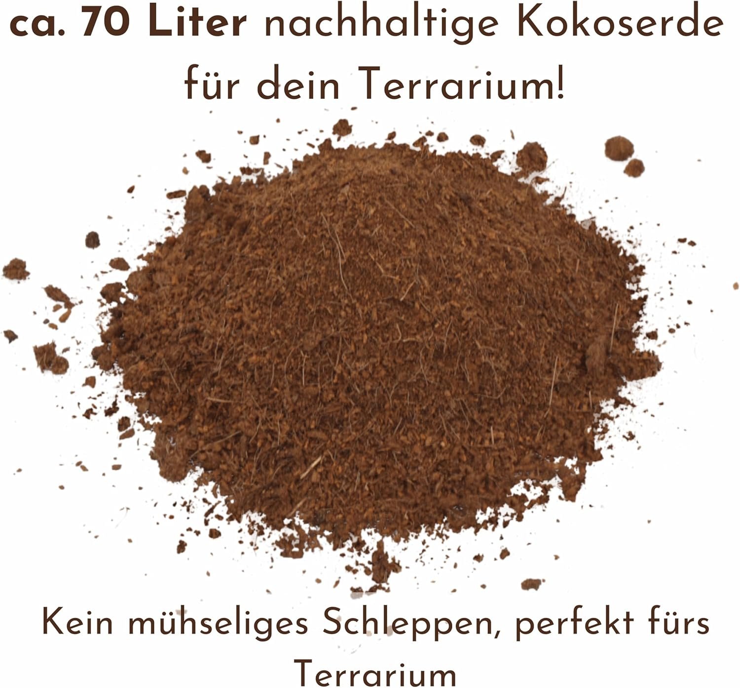 Hohe Saugfähigkeit: Kokosfasern als Bodengrund sind sehr saugfähig und können Flüssigkeiten wie Urin oder Wasser gut aufnehmen, was zu einer hygienischen Umgebung im Terrarium beiträgt.
