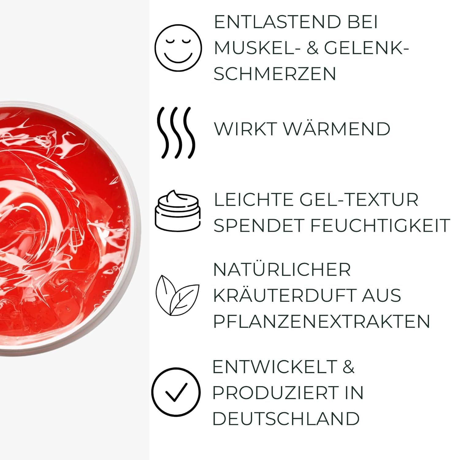 Natürliche Wirkstoffe: Enthält rotes Weinlaub, Rosskastanie, Kamille und Schafgarbe, die die Durchblutung fördern und eine wohltuende Wirkung auf beanspruchte Muskeln haben.