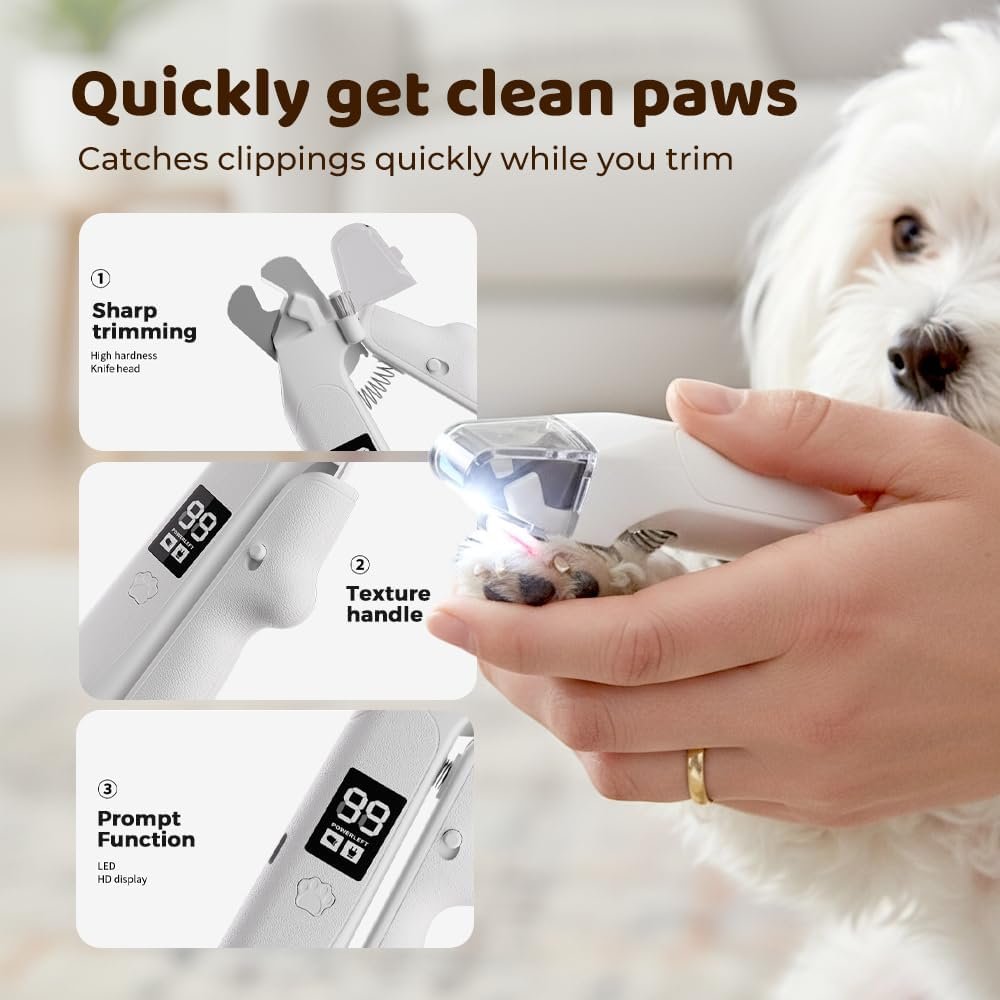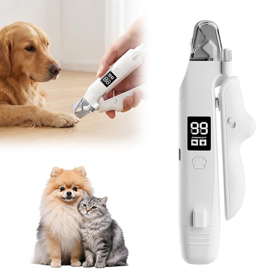 Krallenschere für Hunde mit Licht, 2026 Neue 2-in-1-Klauenschleifmaschine für Hunde, Krallenschere, Katzen, Hundekrallenschneider, Spritzschutz, leise, Ultraschall, scharfe Klingen für Körpertypen Haustier
