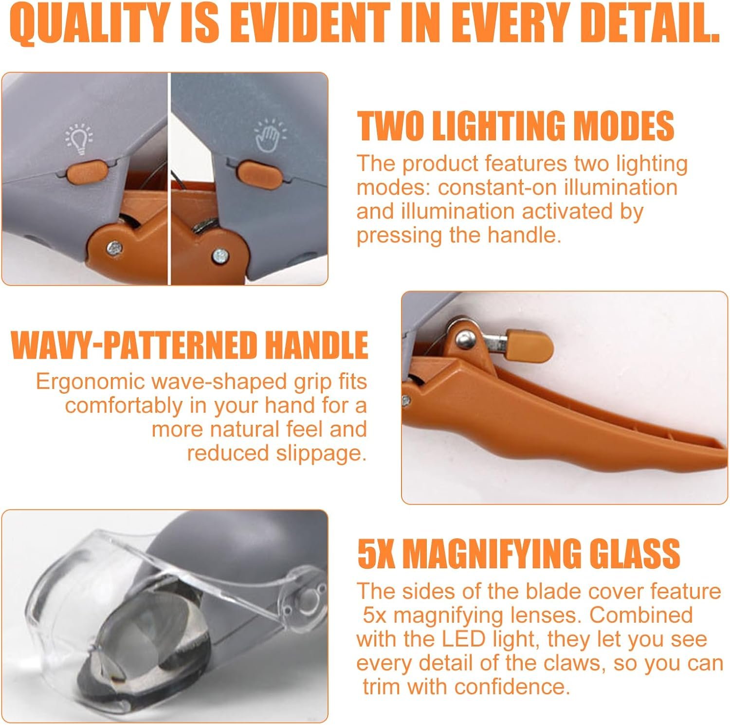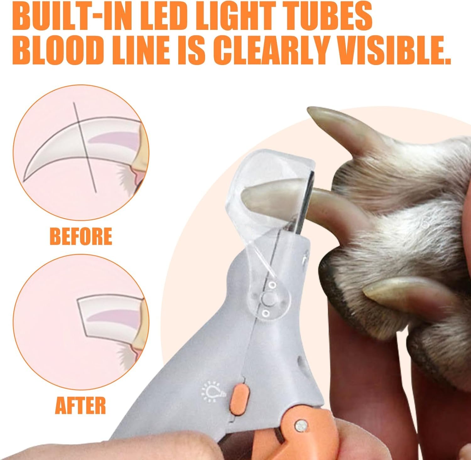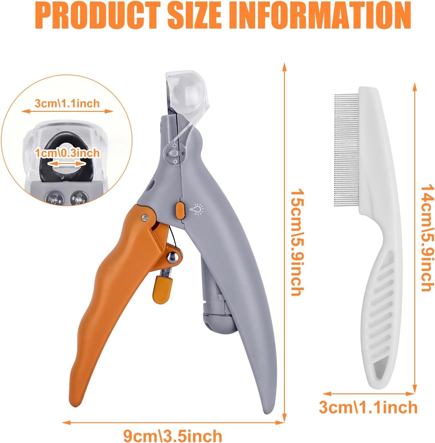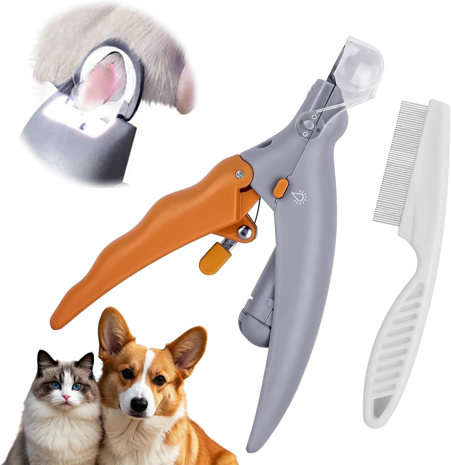 Nagelknipser für Haustiere mit Kamm-Set: Nagelknipser für Hunde mit Licht. Schneiden Sie die Nagelkanten glatt, um Probleme durch zu lange Krallen zu vermeiden. Das eingebaute LED-Licht sorgt für gute Sicht beim Krallenschneiden Ihres Haustiers und verhindert ein zu kurzes Schneiden. Im Set ist auch ein Kamm enthalten, mit dem Sie Ihr Haustier ganz einfach zu Hause pflegen können.