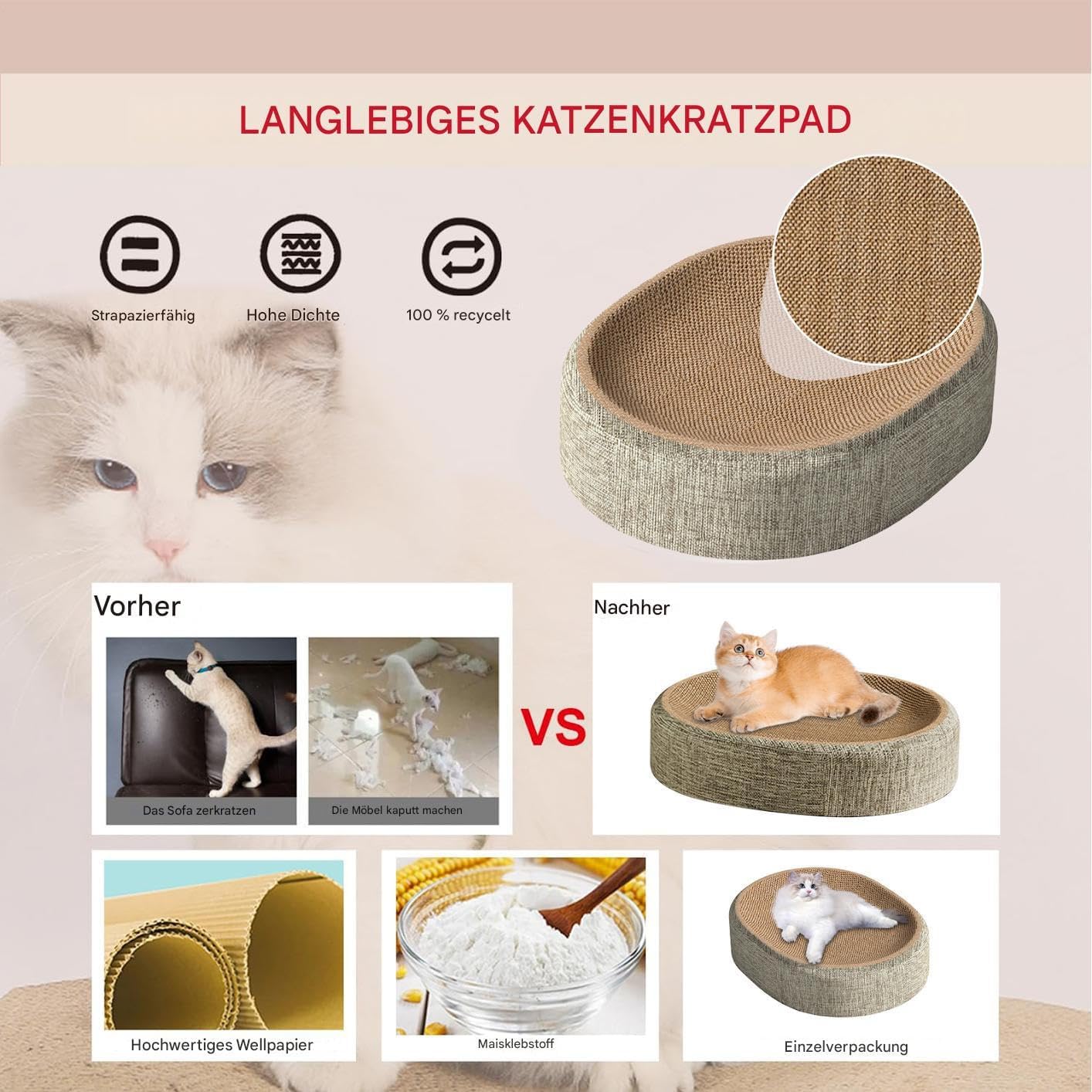 Befriedigung des Kratzinstinkts: Das Katzenkratzbrett fördert die Krallengesundheit und sorgt für perfekte Bewegung, befriedigt den natürlichen Kratzinstinkt und schützt mit diesem Produkt Möbel sowie Teppiche effektiv vor Schäden durch die Katze