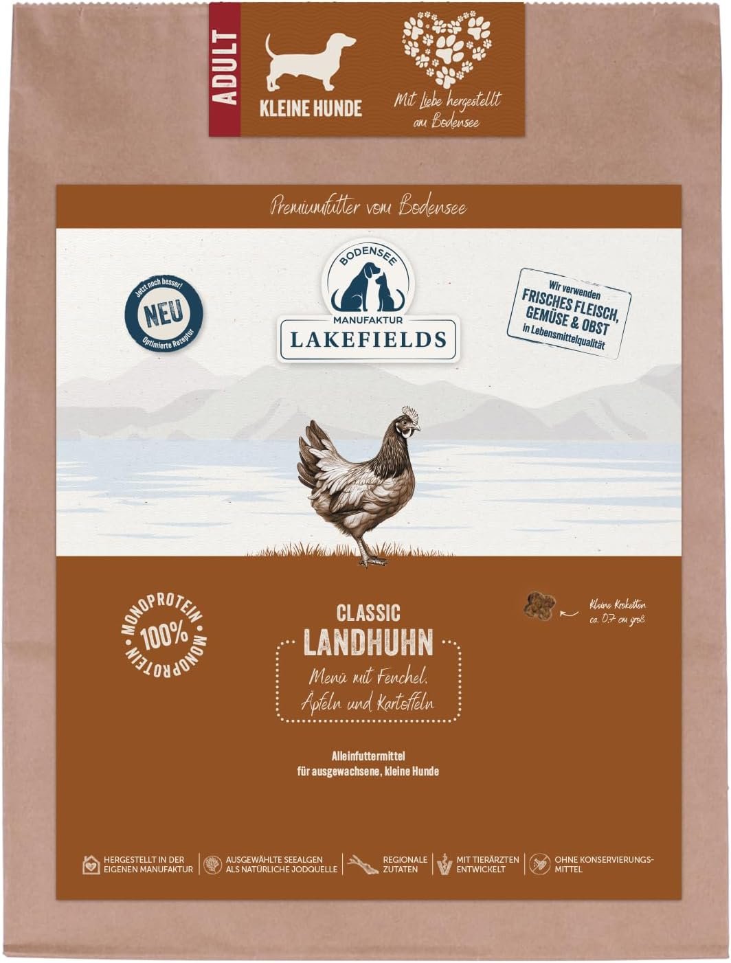 Lakefields ist getreidefrei, verzichtet vollständig auf synthetische Zusatzstoffe und kommt ohne gentechnisch veränderte Organismen aus.