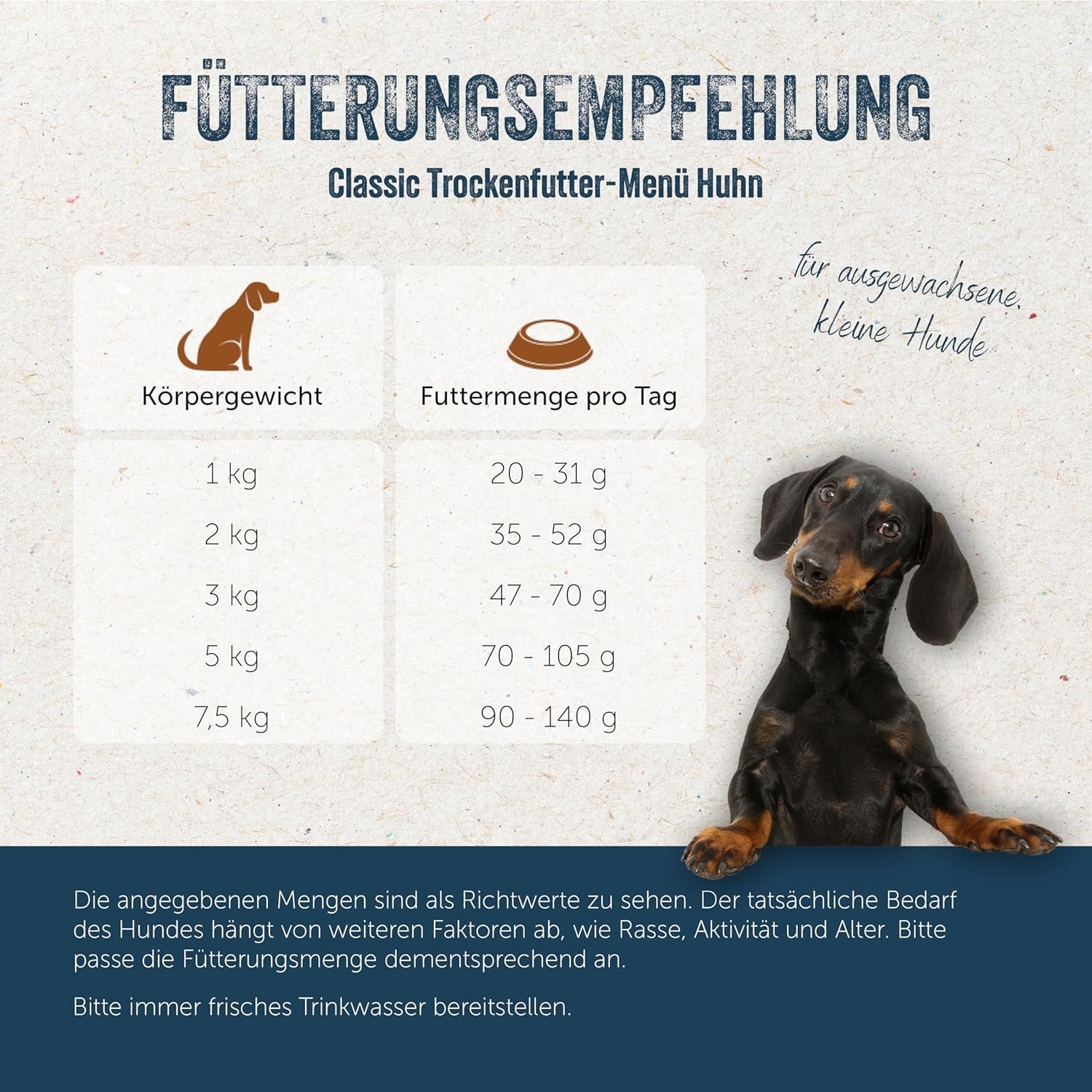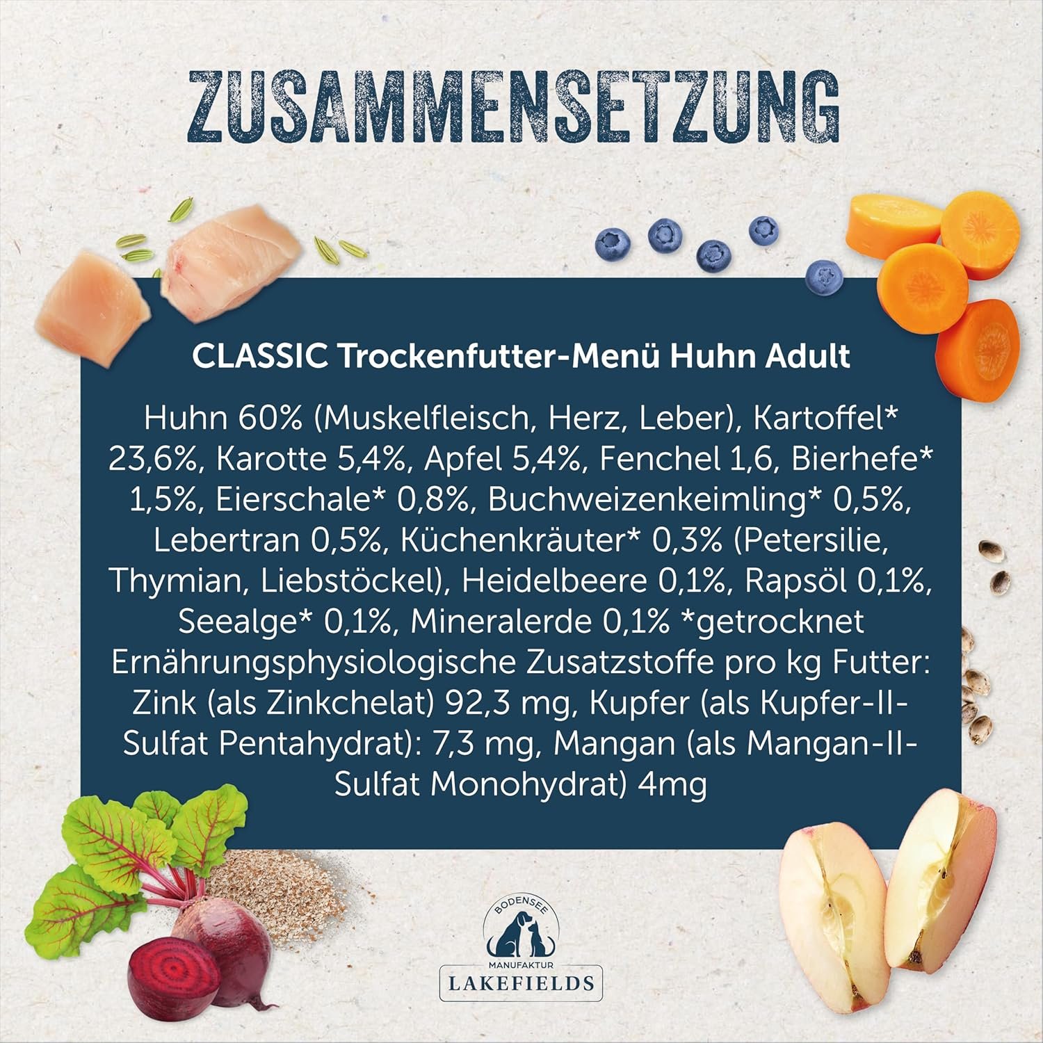 Neue Rezeptur: Die überarbeitete Rezeptur enthält 60 % Huhn in echter Lebensmittelqualität – ausschließlich Muskelfleisch, Herz und Leber aus artgerechter Haltung. Schonend im Steinofen gebacken, bleiben natürliche Vitamine und Aromen optimal erhalten. Ergänzt mit Fenchel, Apfel, Kartoffel und Kräutern ergibt das getreidefreie Futter eine rundum ausgewogene, gut verdauliche Vollnahrung für ausgewachsene Hunde.