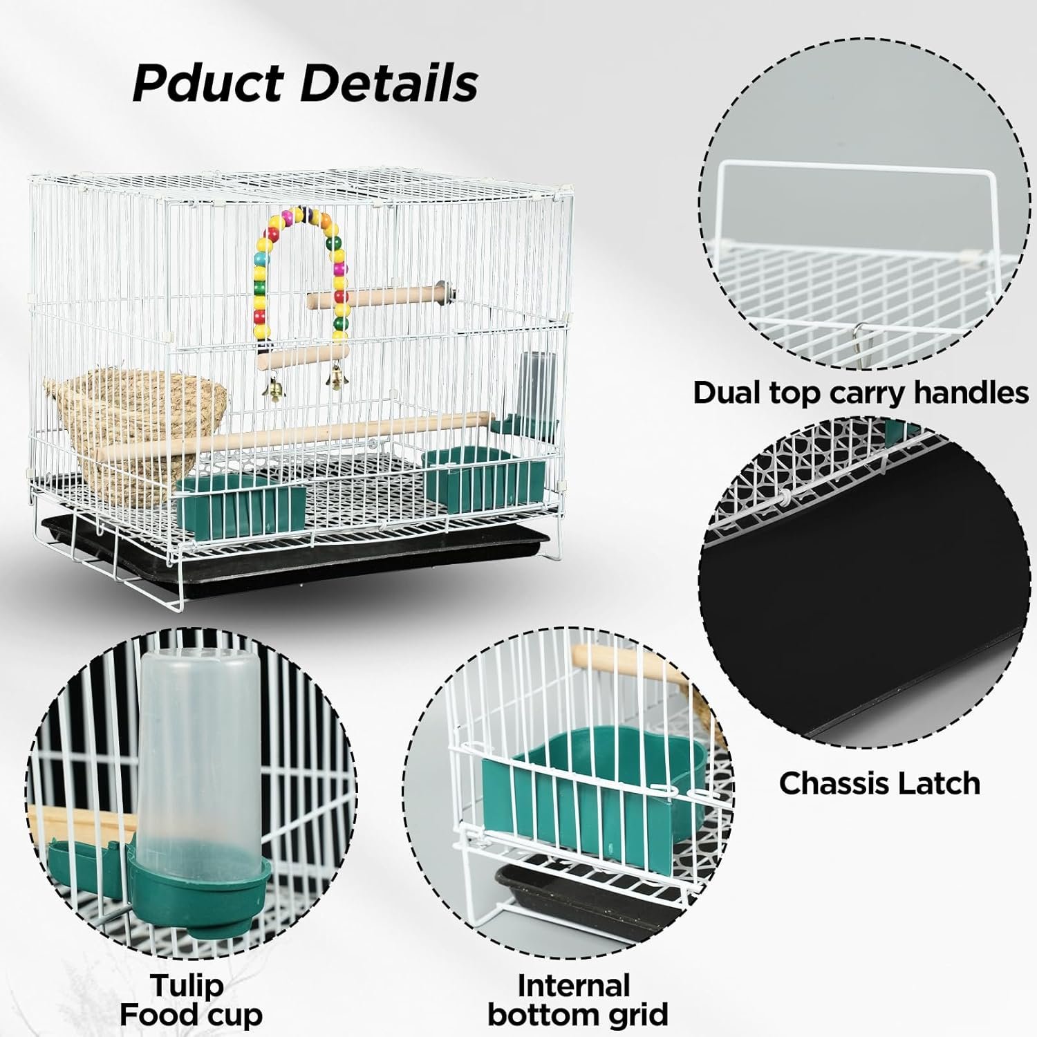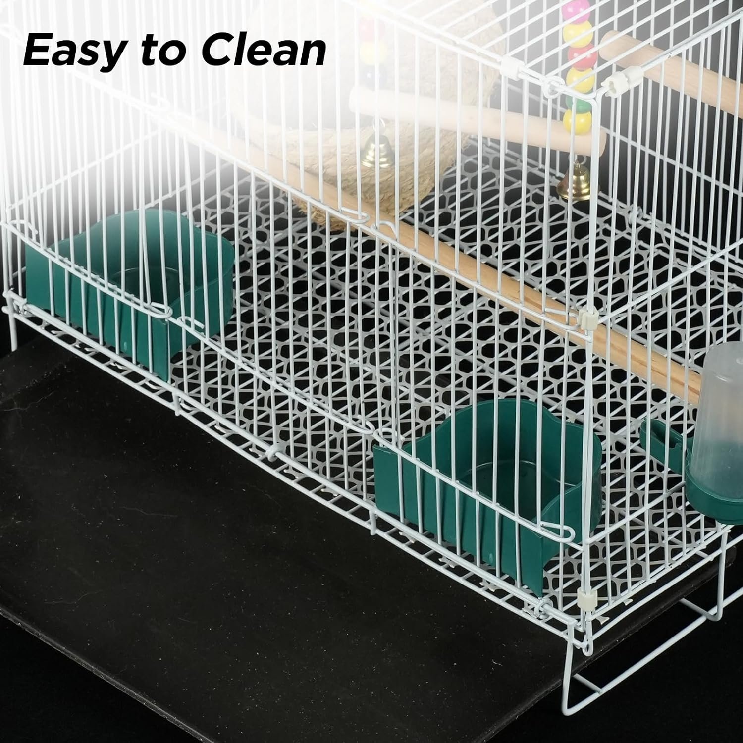 LEICHT ZU REINIGEN Zur einfachen Reinigung befindet sich am Boden des Käfigs ein abnehmbarer, herausziehbarer Abfallbehälter. Zwischen der Schale und dem Lebensraum der Vögel befindet sich ein Gitter, das die Vögel effektiv von ihrem Kot trennt und ihnen eine saubere Umgebung gewährleistet