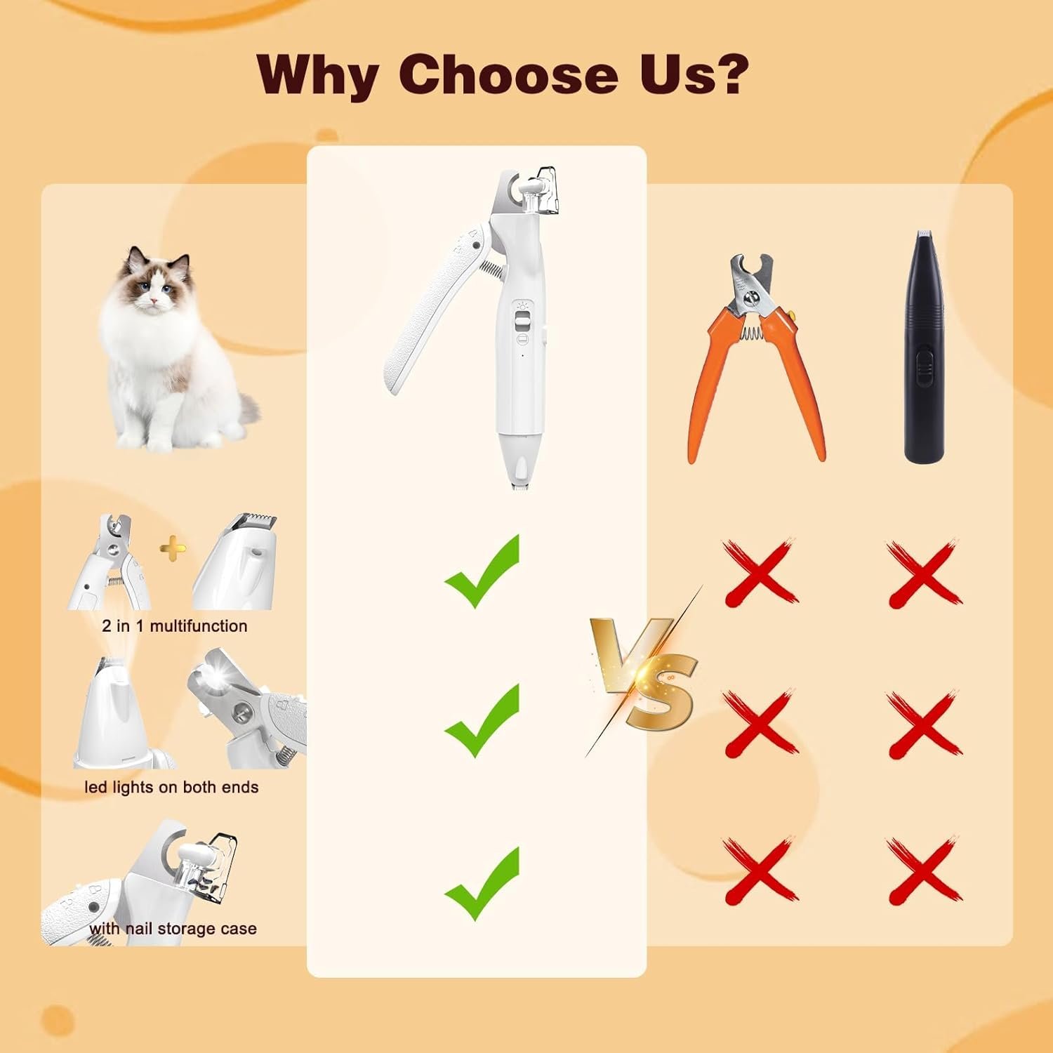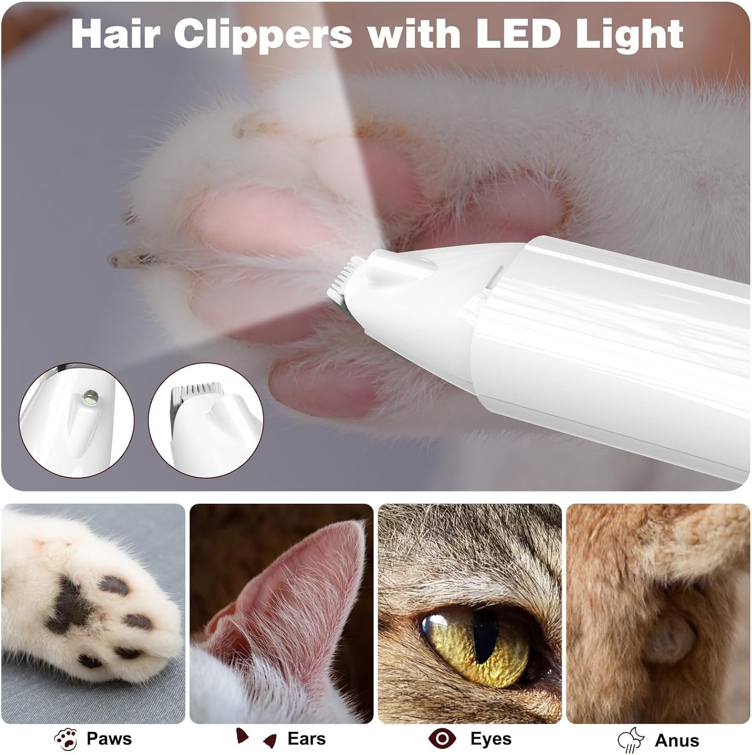 Rasieren, LED-Beleuchtung, 3-in-1-Nagelknipser: Kriogor Tierhaarschneider selbstbeleuchtet mit LED-Licht für eine sicherere Rasur und zum Rasieren der Füße in dunklen Umgebungen; Mit dem mitgelieferten Nagelknipser können Sie die Nägel ganz einfach kürzen und die Pfoten Ihres Hundes sauber und gesund halten.