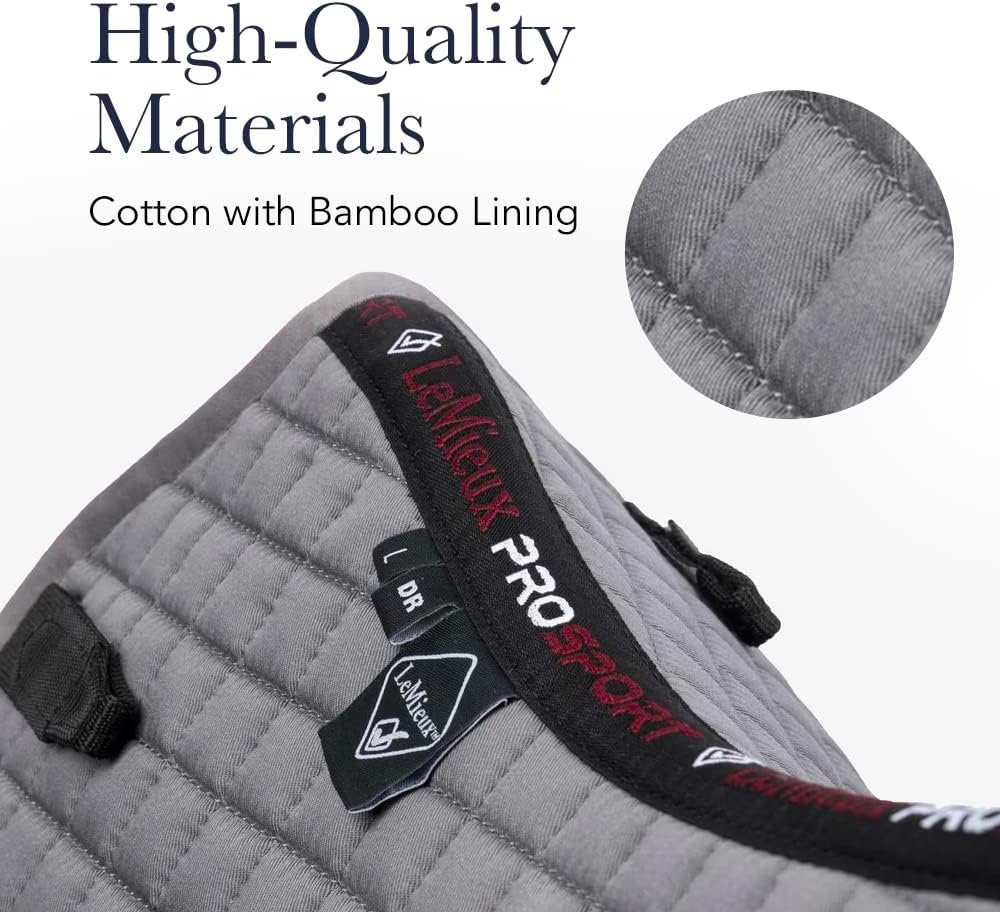 KLASSISCHER STIL – Die Baumwollschabracken von LeMieux bieten eine stilvolle und praktische Möglichkeit, Ihre Wettkampfnummer in diskreten transparenten Taschen zu tragen, ohne dass separate Nummern angebracht werden müssen. Diese Schabracke wird mit drei kompletten Nummernsätzen für jede Seite geliefert. Auf beiden Seiten des Platzes befinden sich Taschen, um den neuen britischen Dressuranforderungen zu entsprechen.
