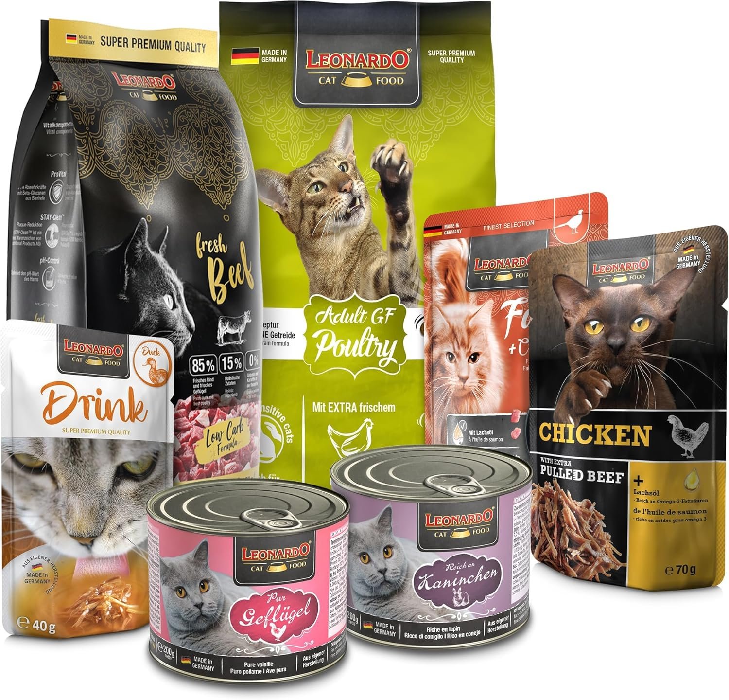 Sind Sie noch auf der Suche nach dem besten Futter für Ihre Katze? Mit unseren Musterboxen können Sie sich jetzt von der besonderen Leonardo-Qualität und Akzeptanz überzeugen. Einfach Sorte auswählen und nach Hause liefern lassen.